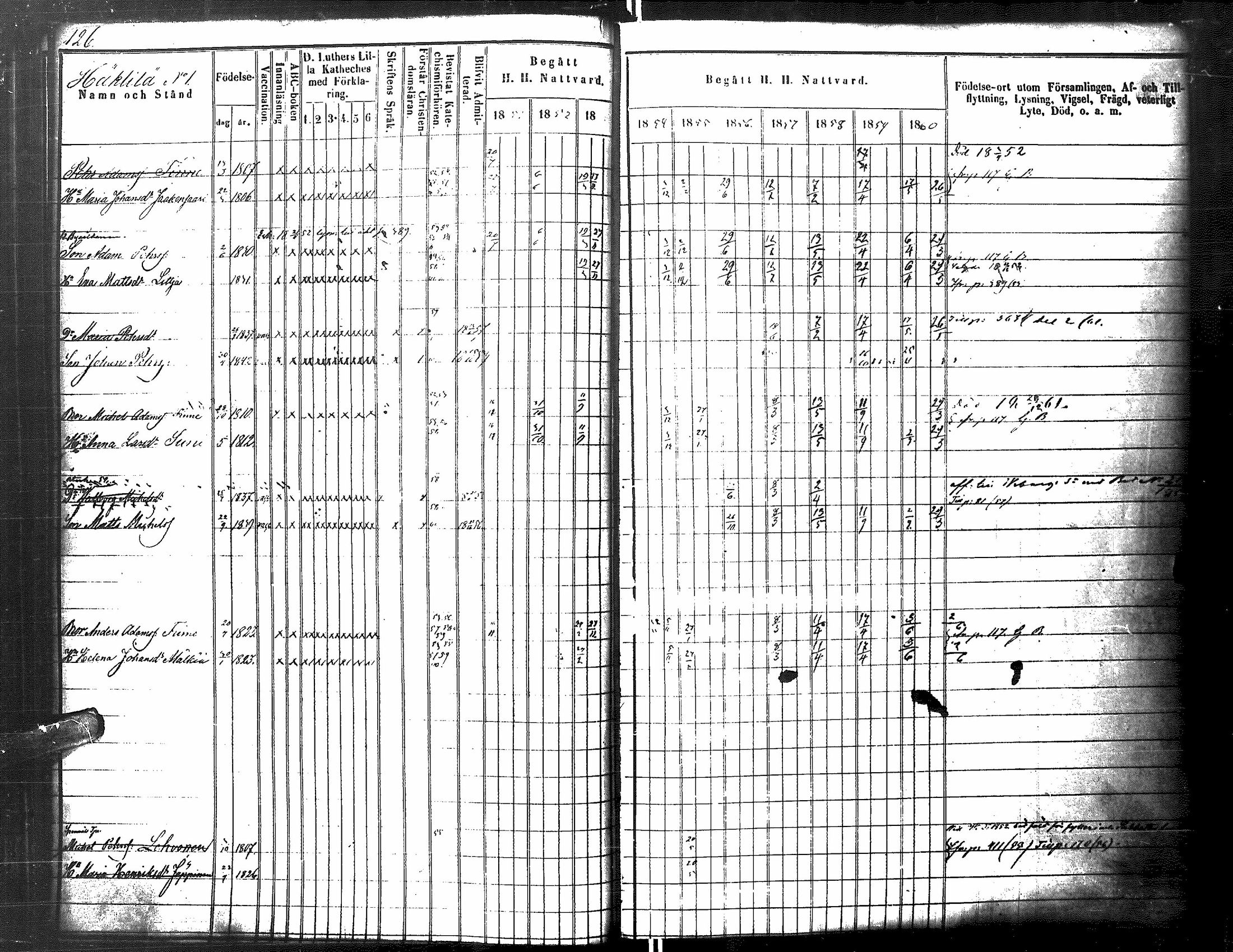 Antrea , Rippikirja, 1850-1860