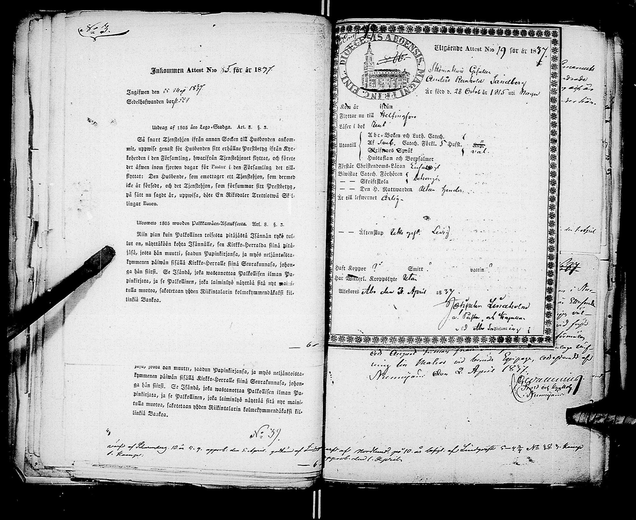 Ensimmäinen Suomen meriekipaasi , Muuttokirjoja, 1837-1837