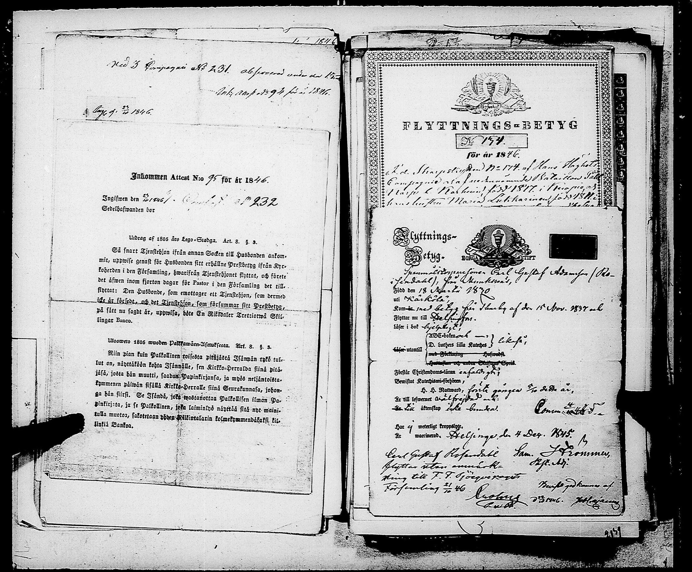 Ensimmäinen Suomen meriekipaasi , Muuttokirjoja, 1846-1847