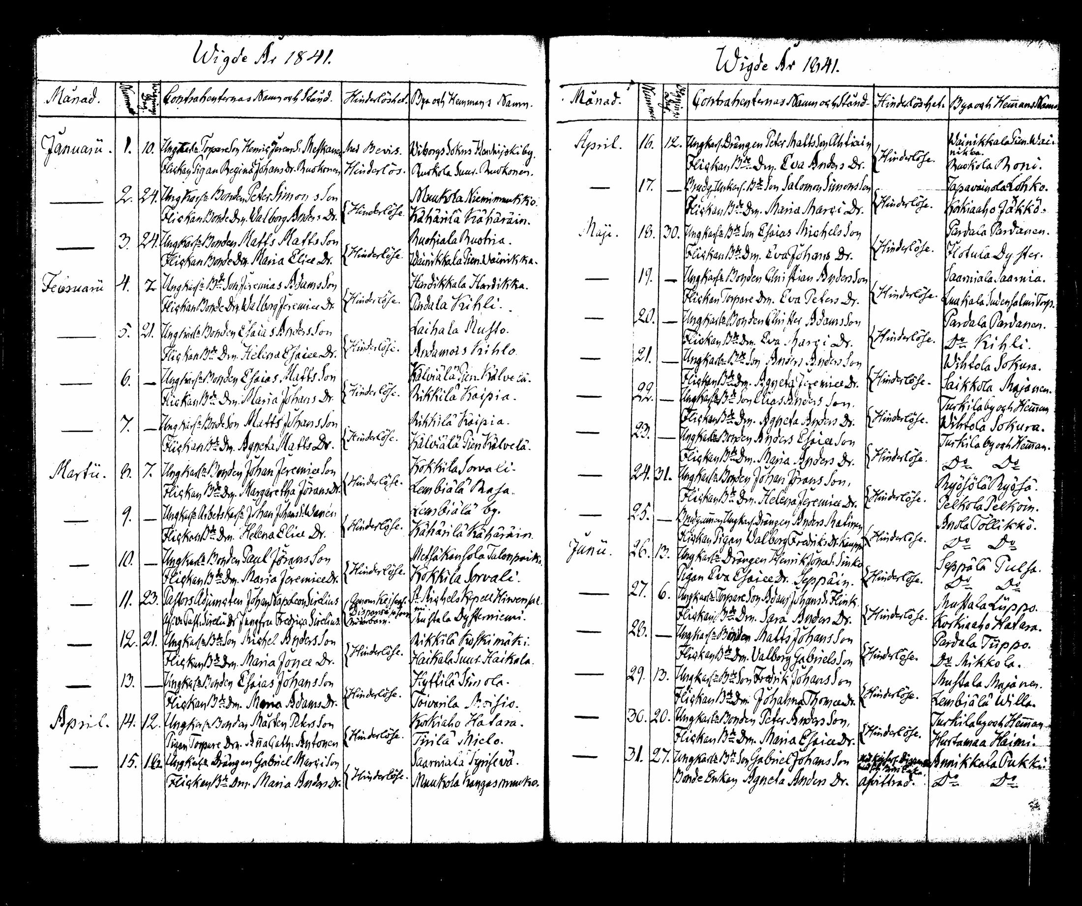 Lappee , Vihityt, 1839-1853