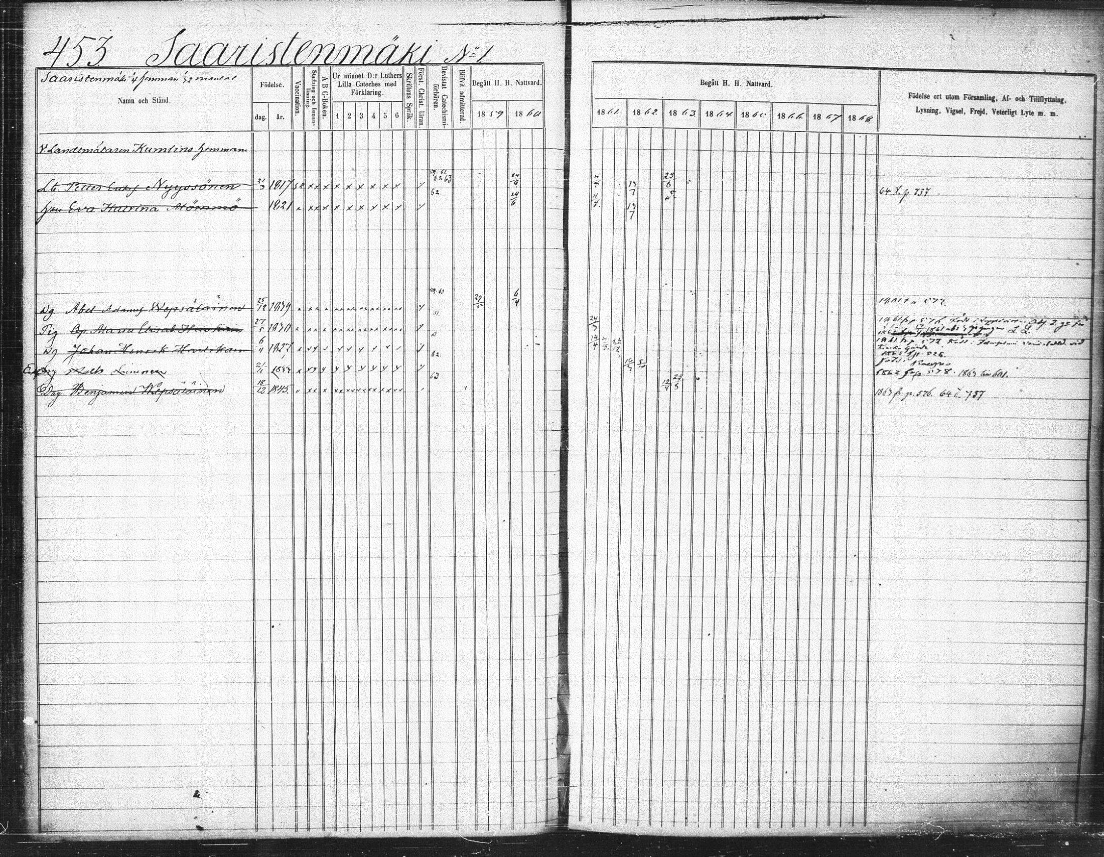 Suonenjoki , rippikirja, 1859-1868