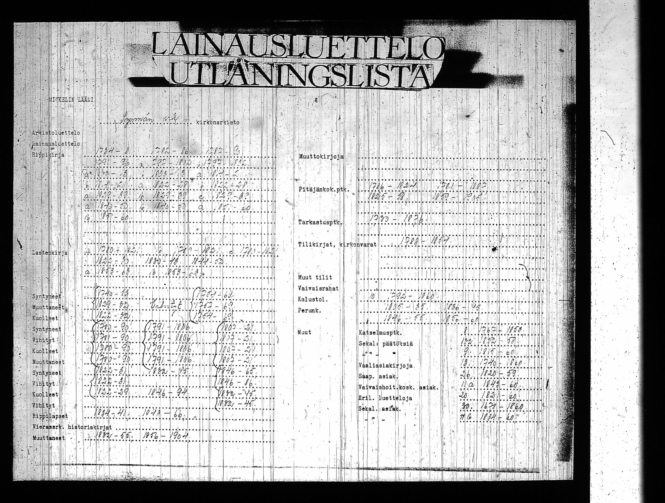 Sysmä , Rippikirja, 1840-1850