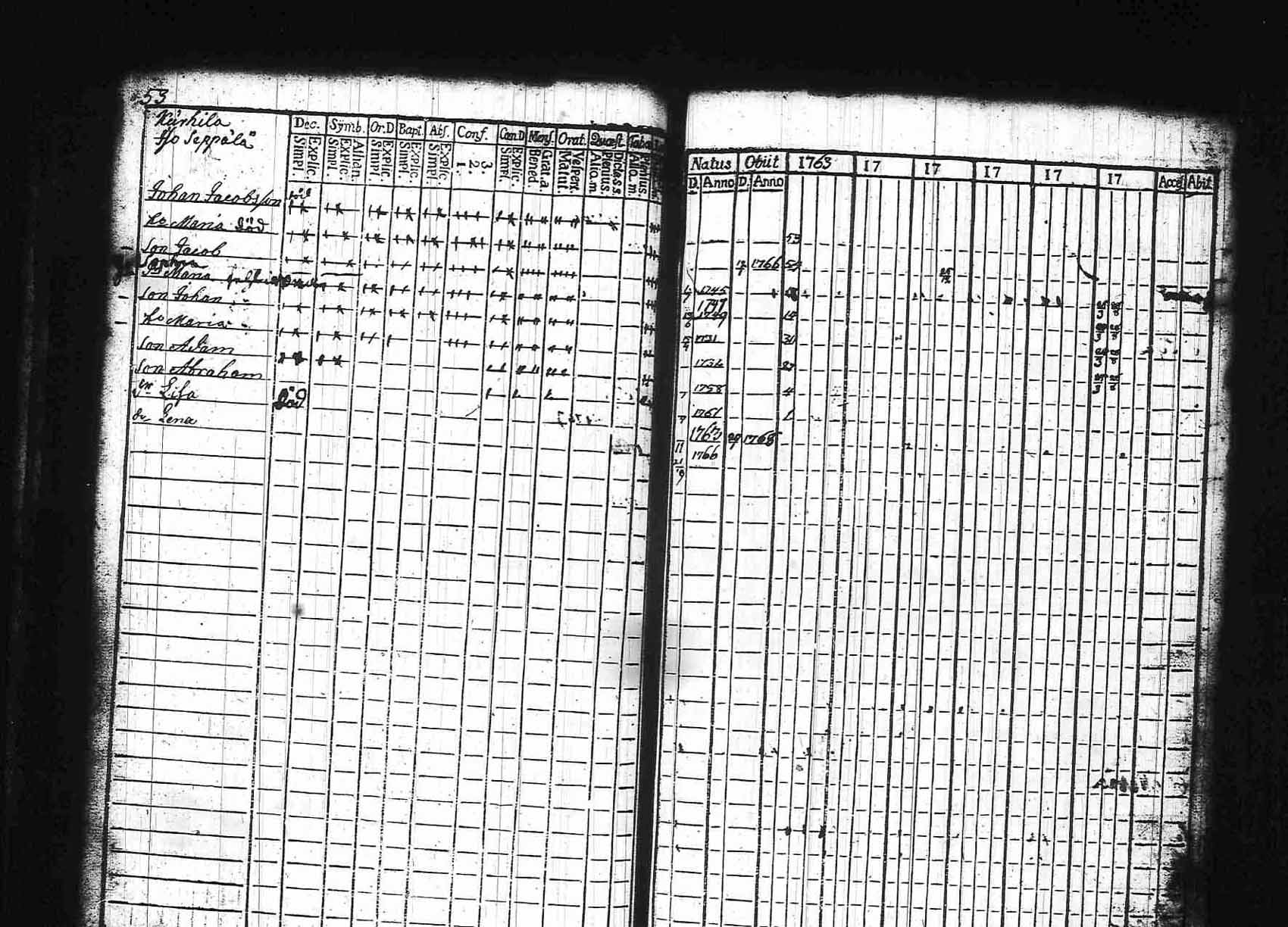 Asikkala , Rippikirja, 1763-1769
