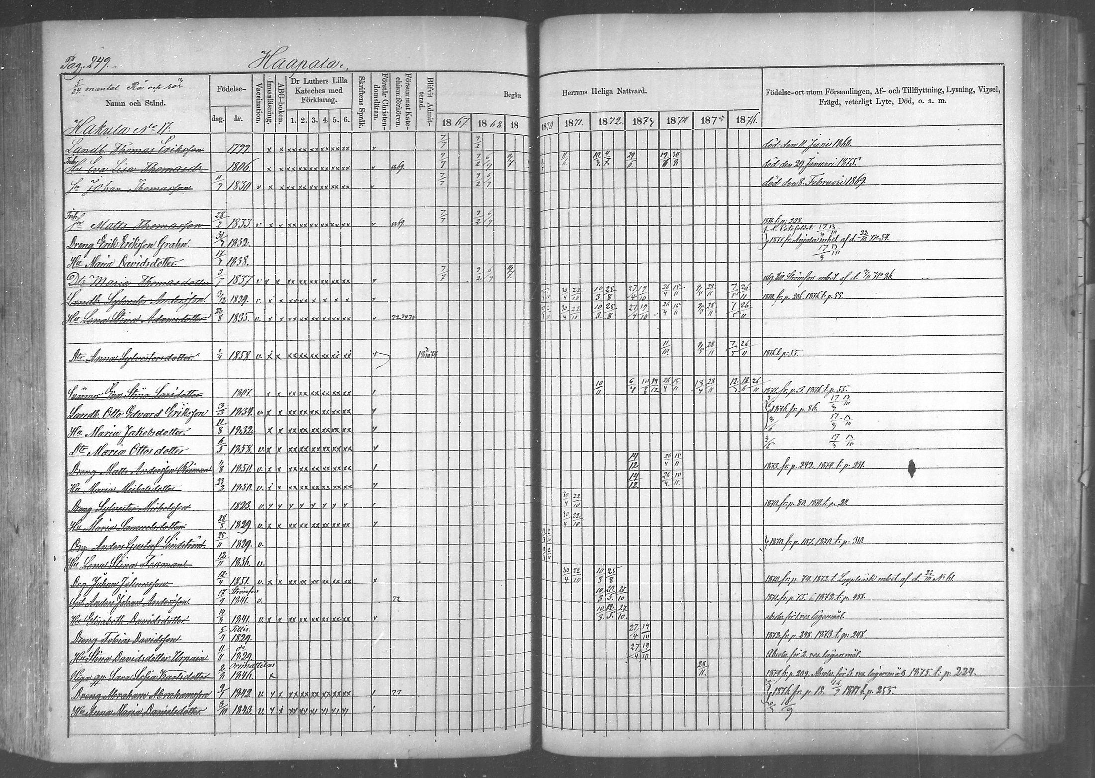 Elimäki , Rippikirja, 1867-1876