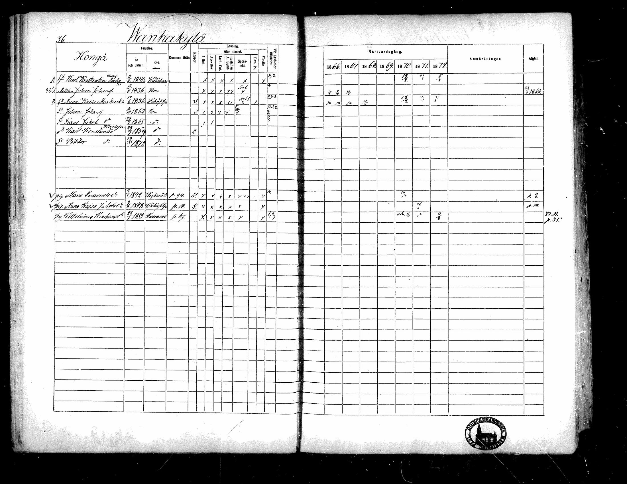 Isojoki , Rippikirja, 1866-1872