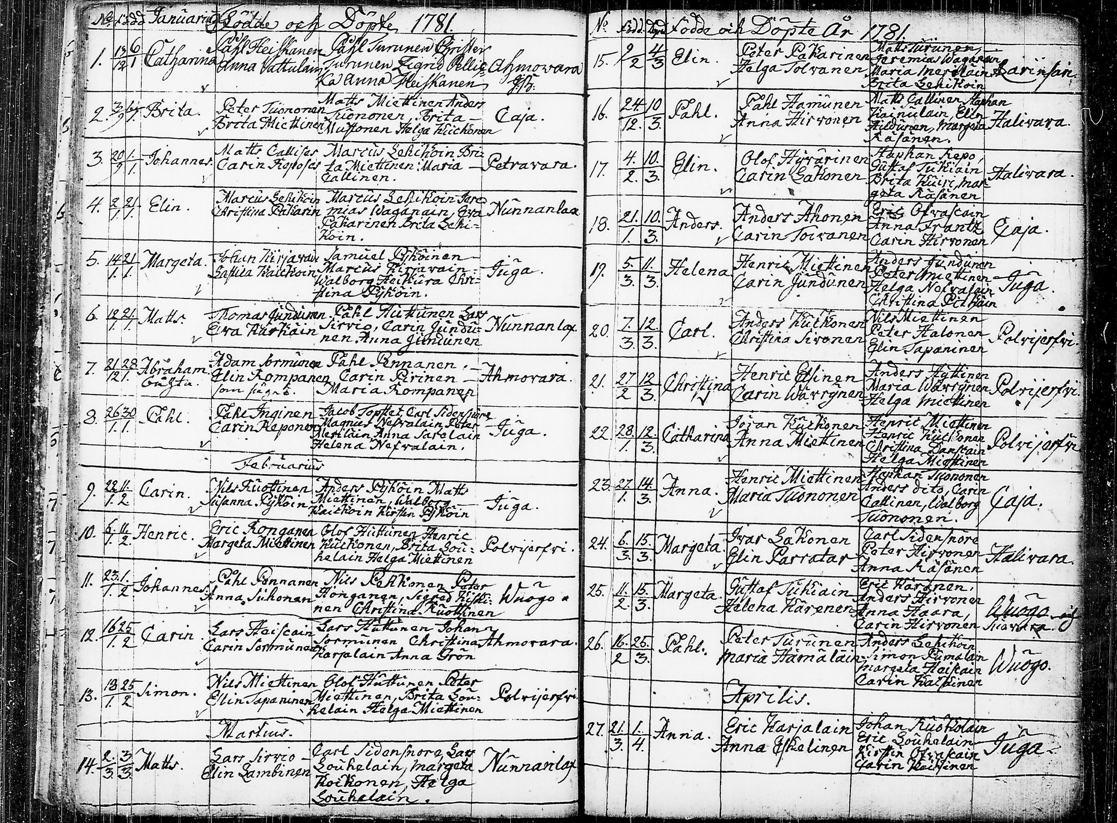 Juuka , Syntyneet-vihityt-kuolleet, 1773-1813