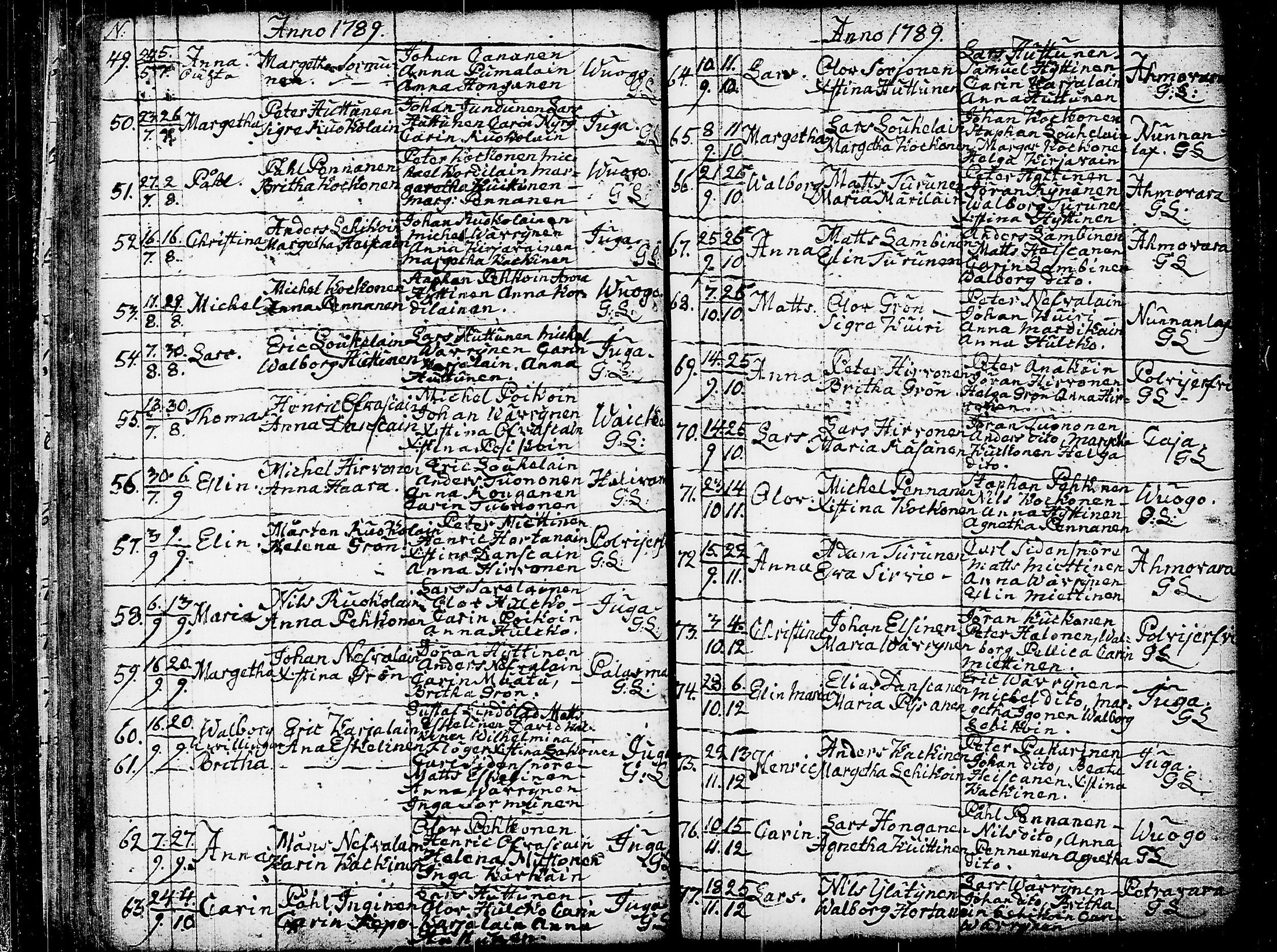 Juuka , Syntyneet-vihityt-kuolleet, 1773-1813