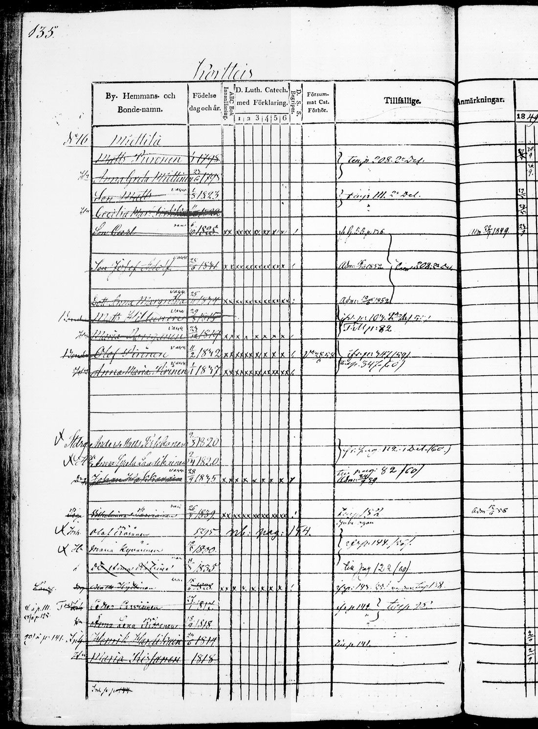 Kaavi , Rippikirja, 1849-1860