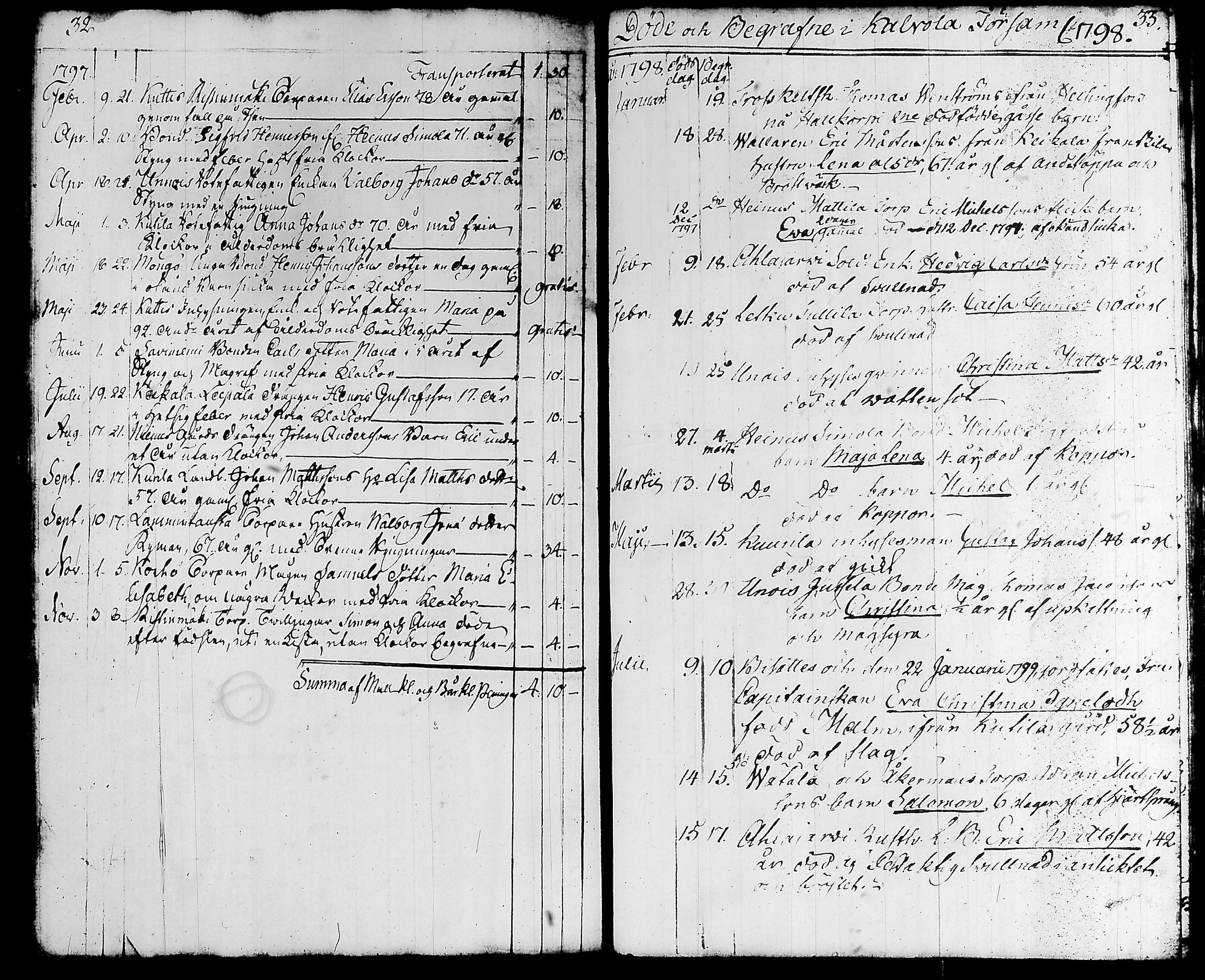 Kalvola , Syntyneet-vihityt-kuolleet, 1787-1820