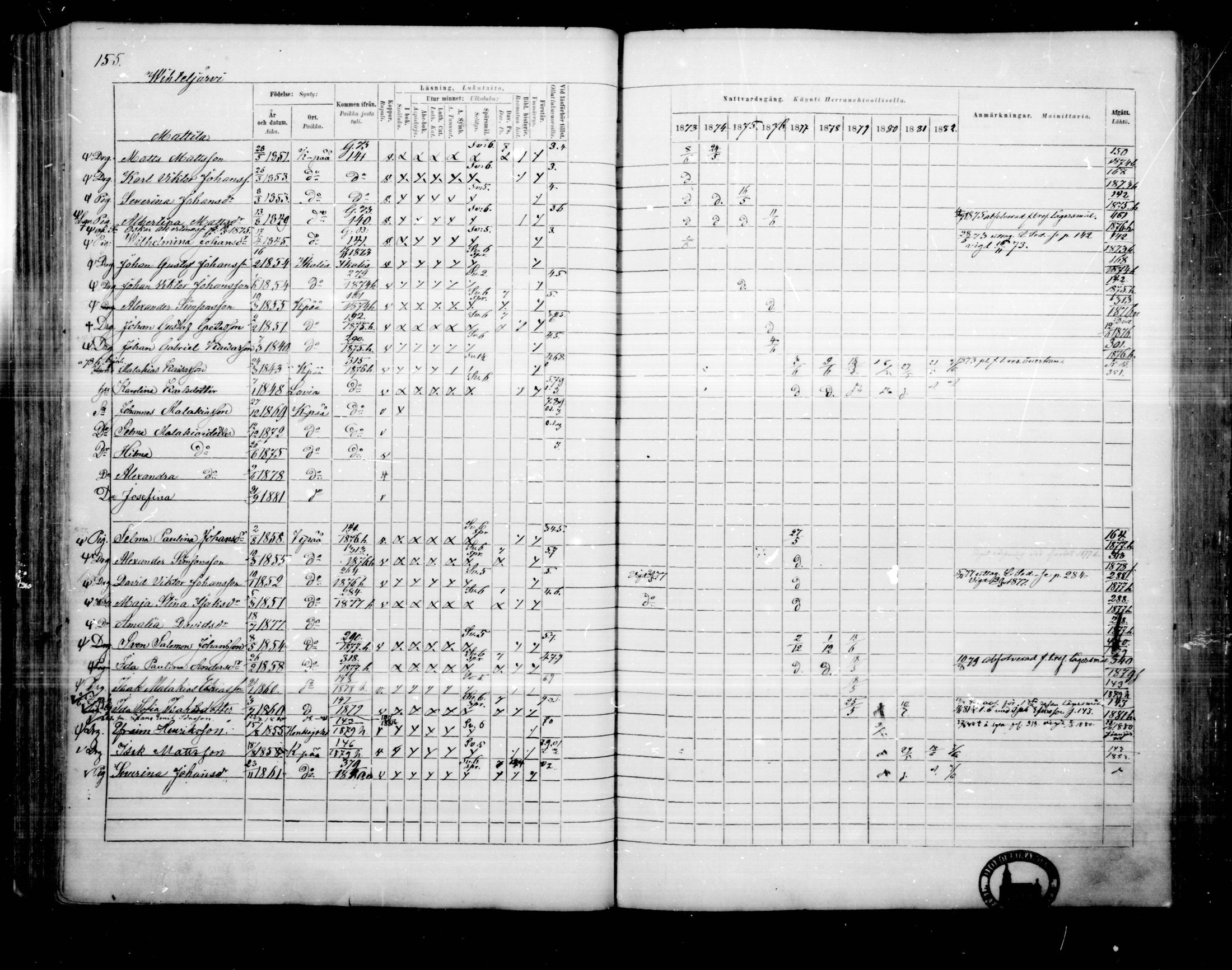 Kankaanpää , Rippikirja, 1873-1882