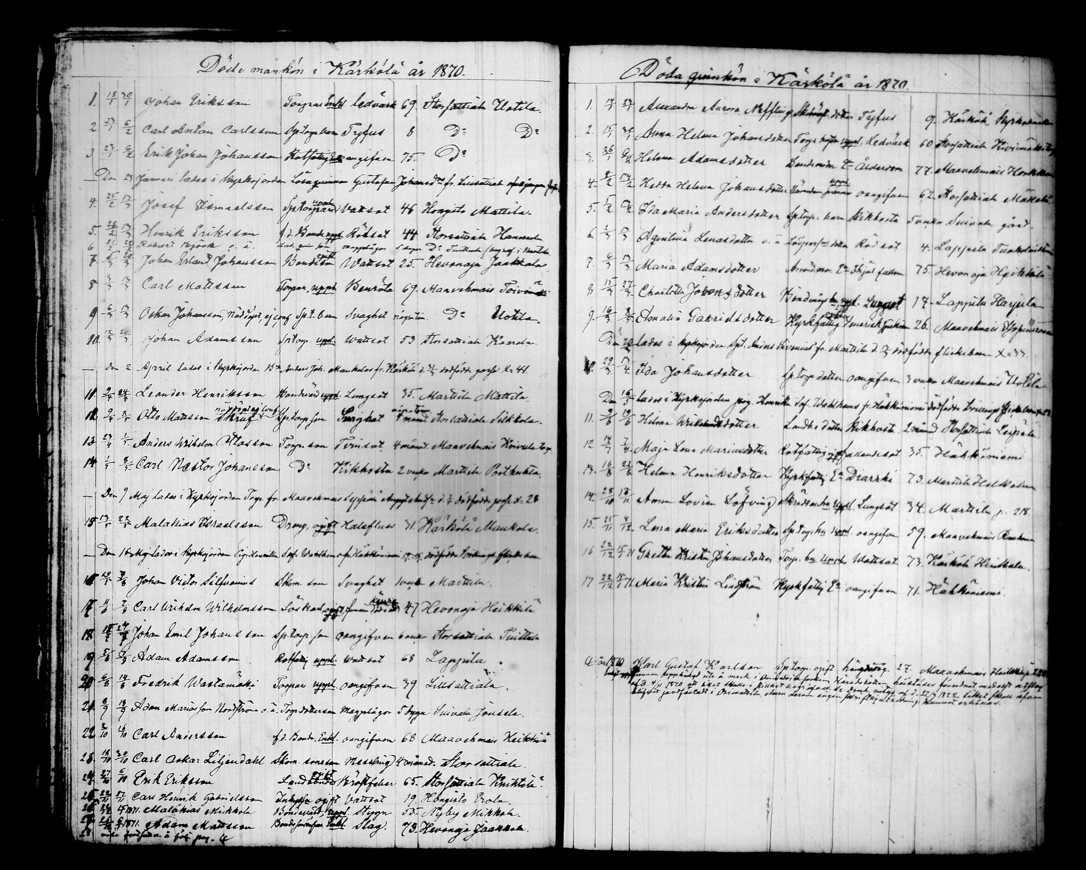 Kärkölä , Kuolleet, 1851-1884