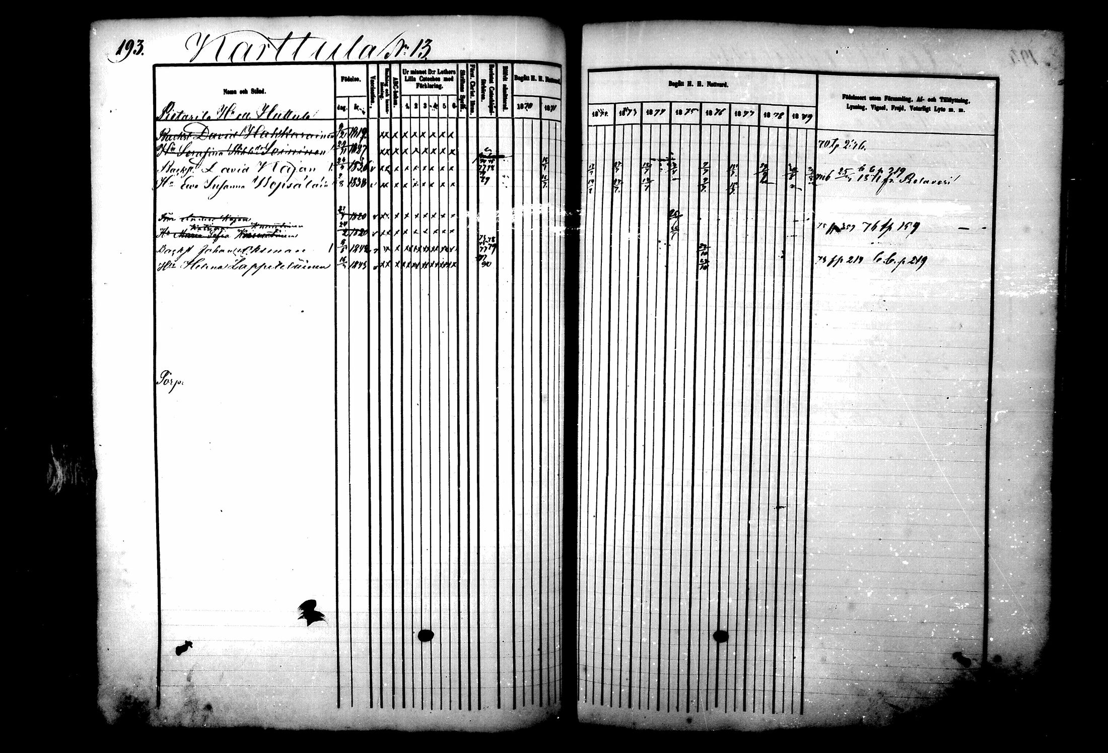 Karttula , Rippikirja, 1870-1880