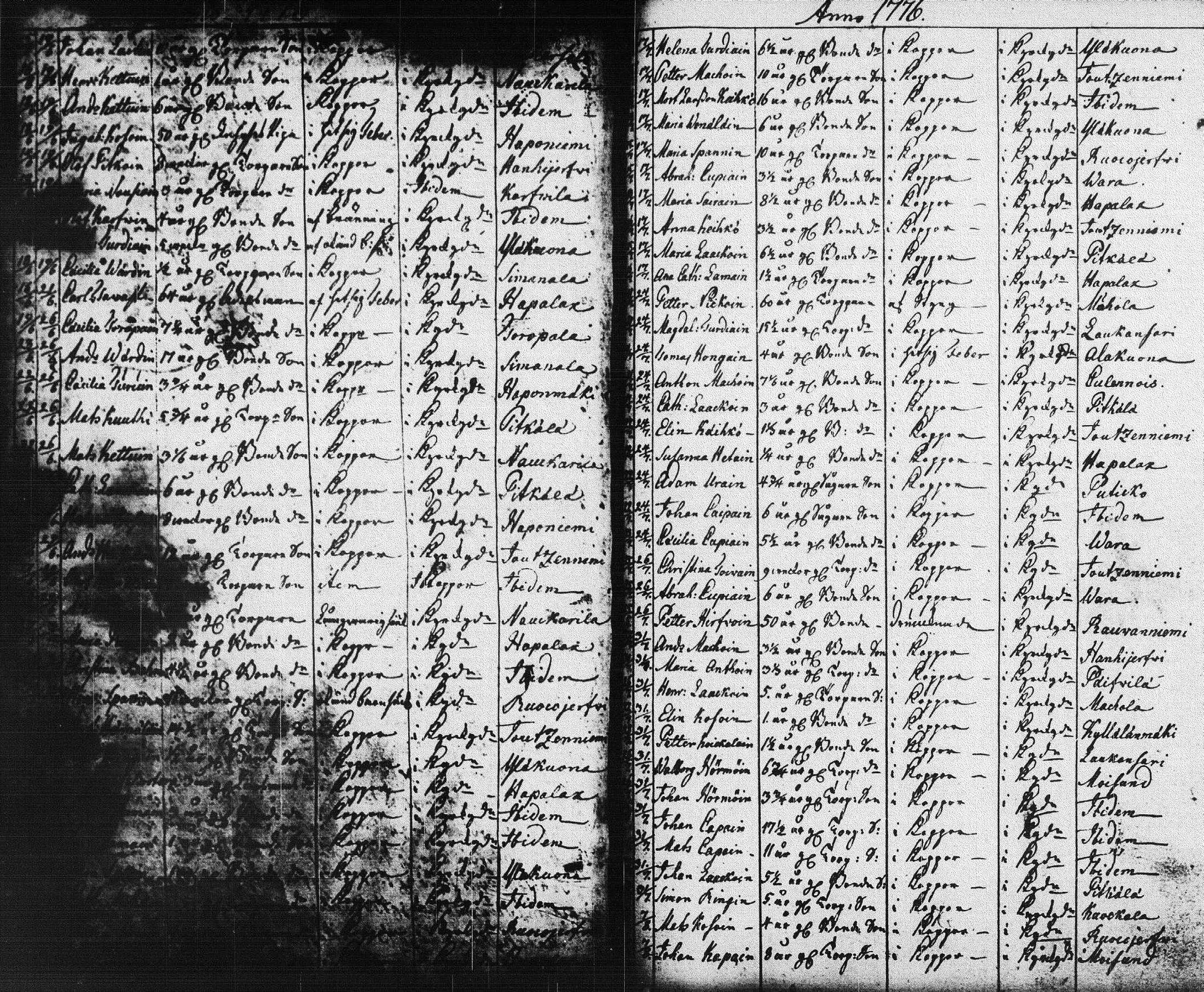 Kerimäki , Kuolleet, 1707-1777