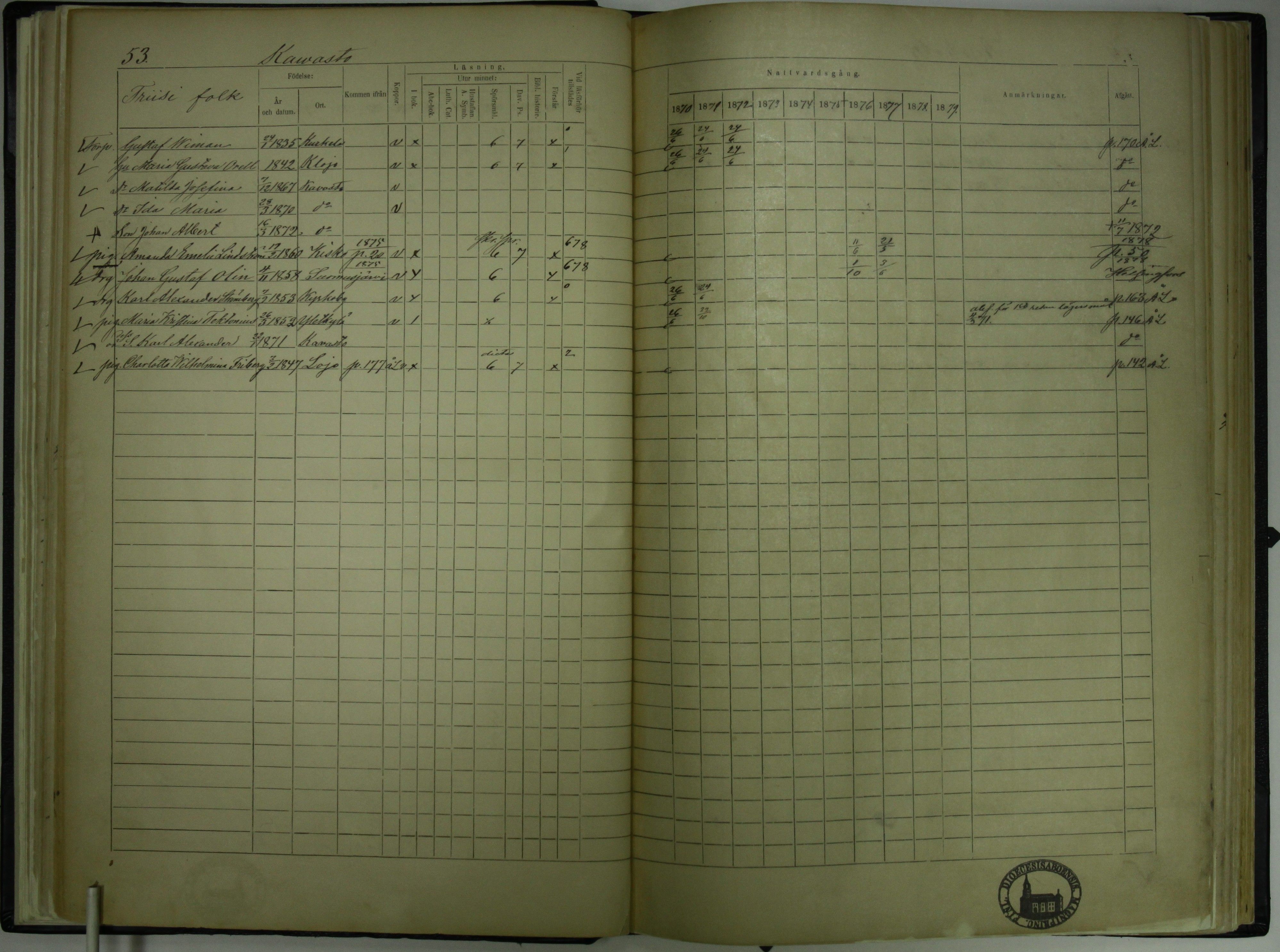 Kisko , Rippikirja, 1870-1879