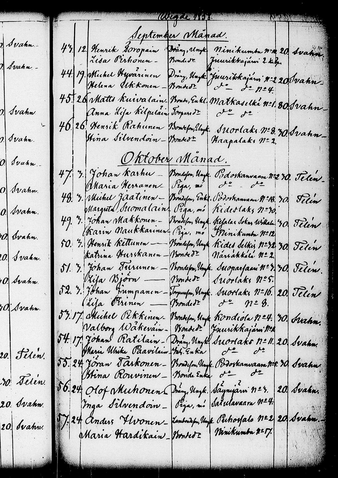 Kitee , Vihityt, 1844-1870