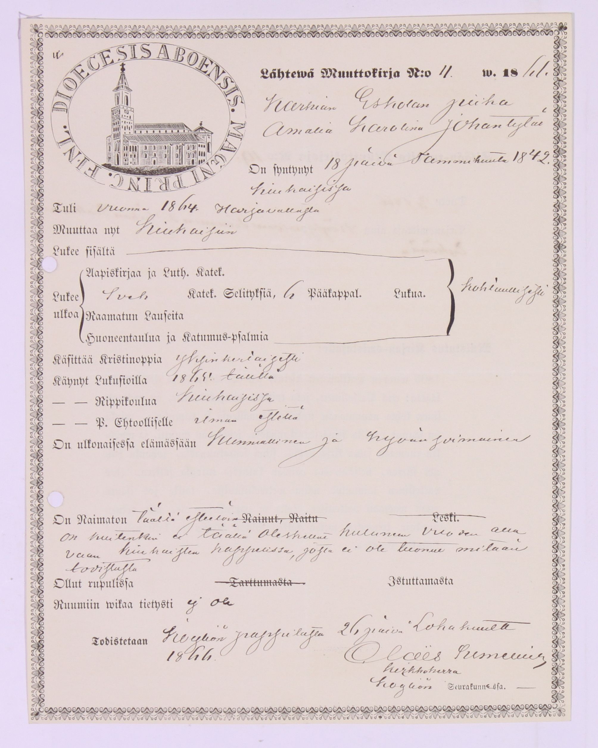Kiukainen , Muuttokirjoja, 1858-1868