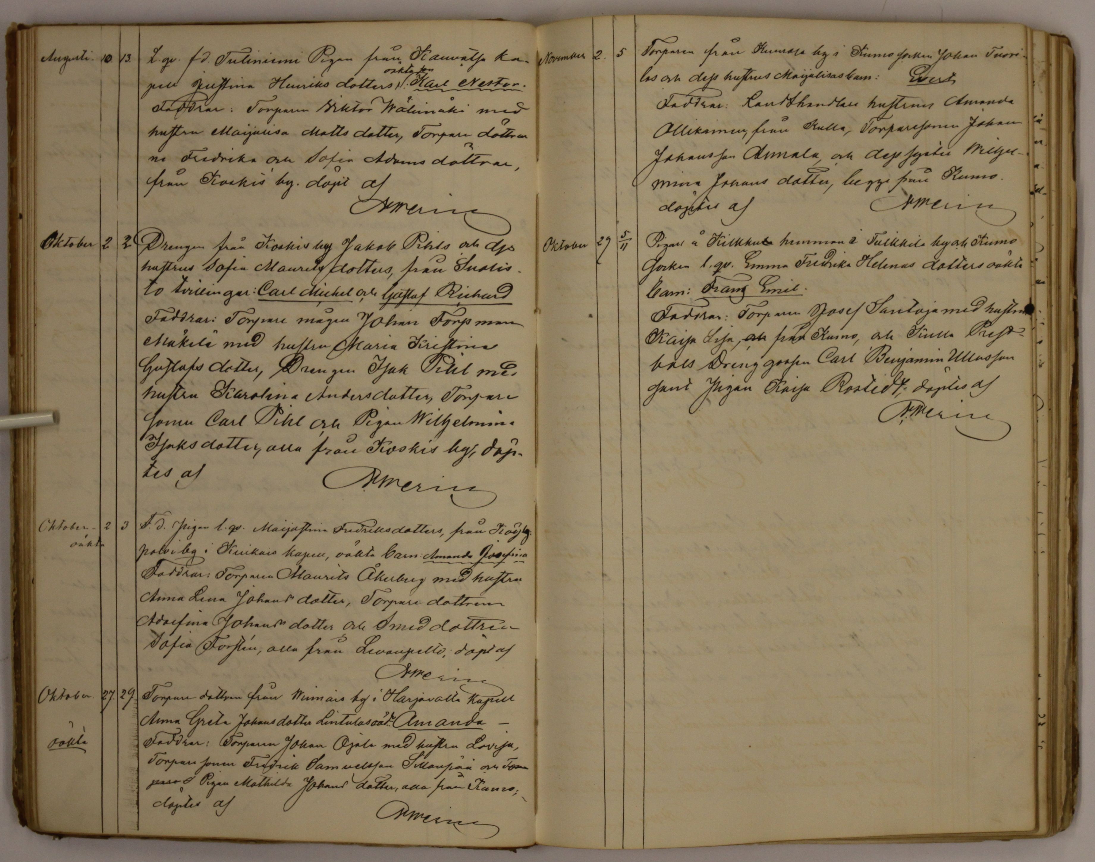 Kullaa , Vierasseurakuntalaisia, 1854-1886