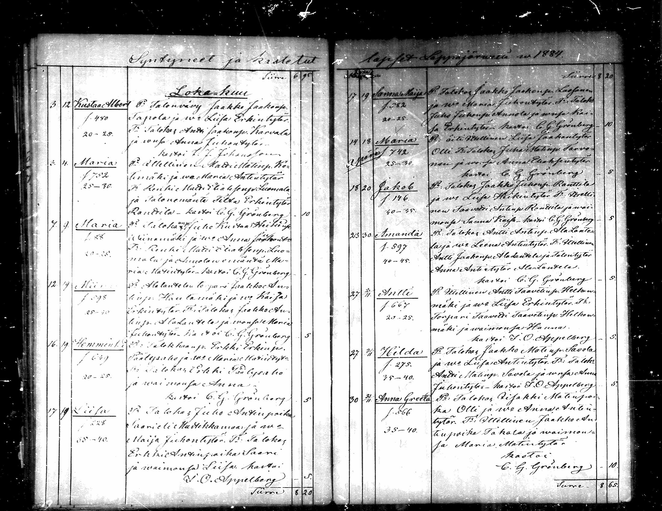 Lappajärvi , Syntyneet, 1867-1885