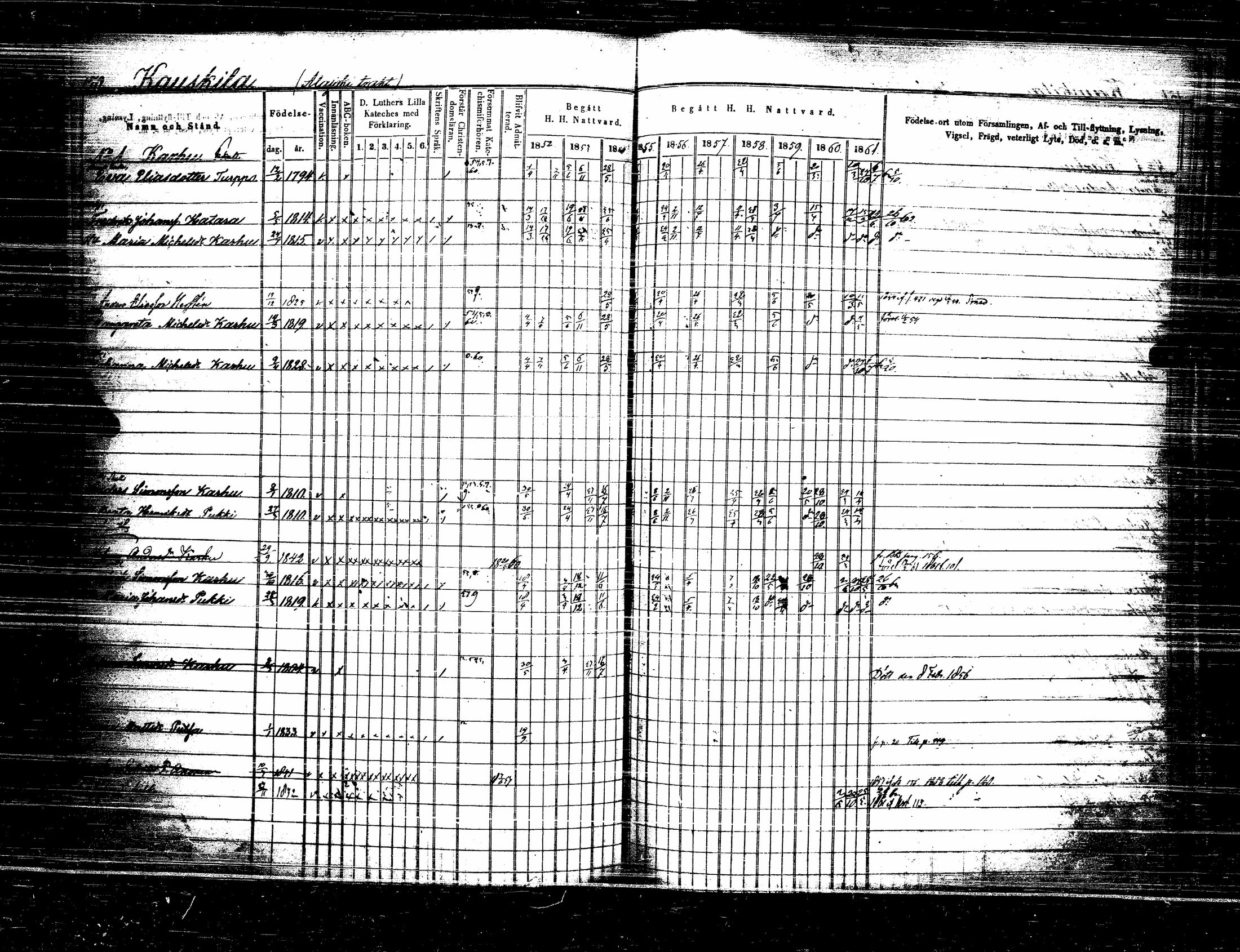 Lappee , Rippikirja, 1852-1861