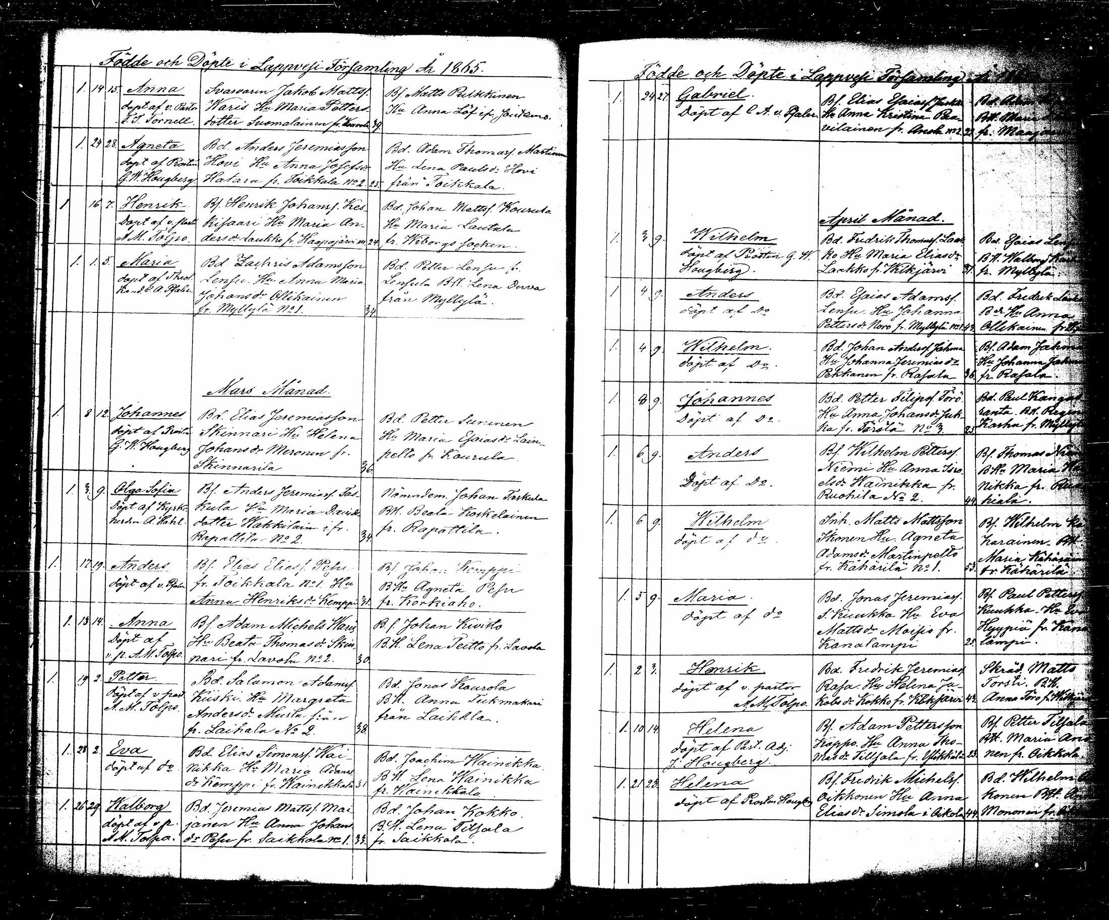 Lappee , Syntyneet, 1854-1870