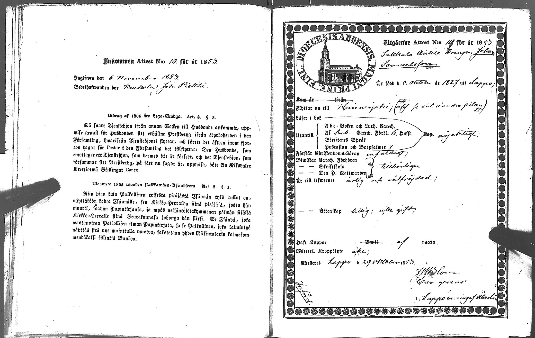 Lappi , Muuttokirjoja, 1853-1853