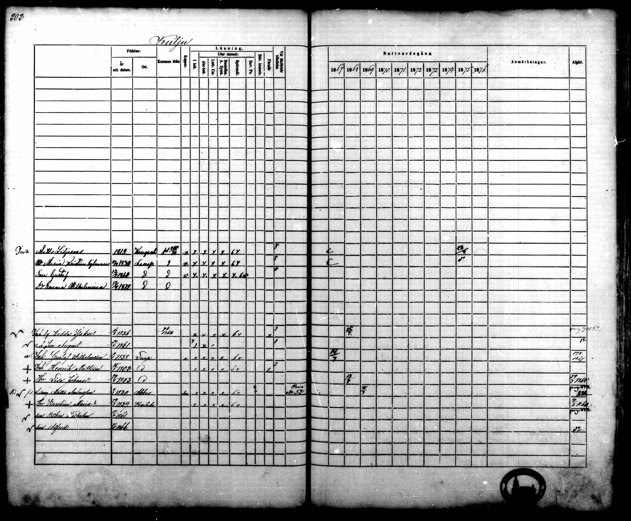 Lempäälä , Rippikirja, 1867-1876