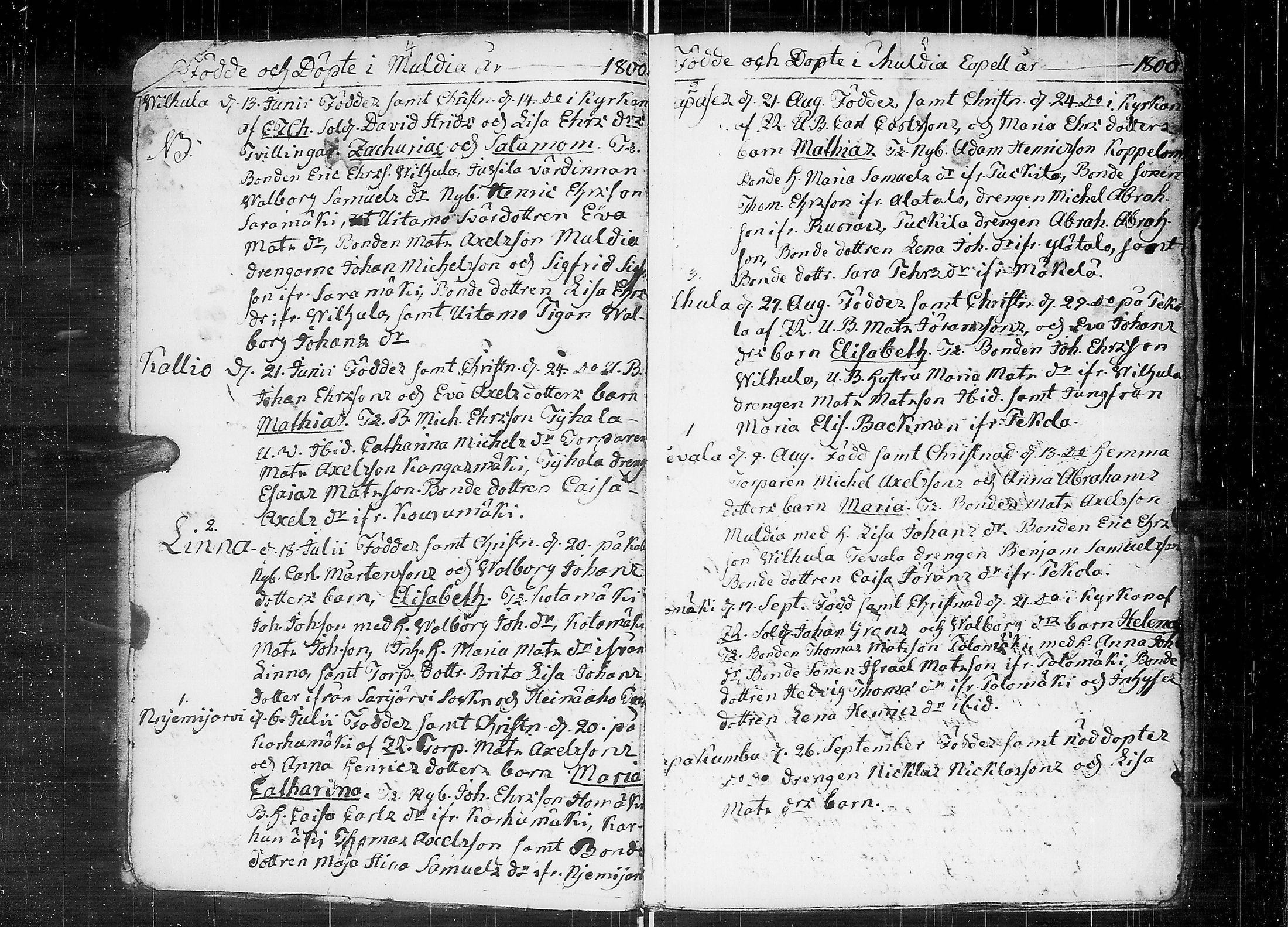 Multia , Syntyneet, 1800-1855