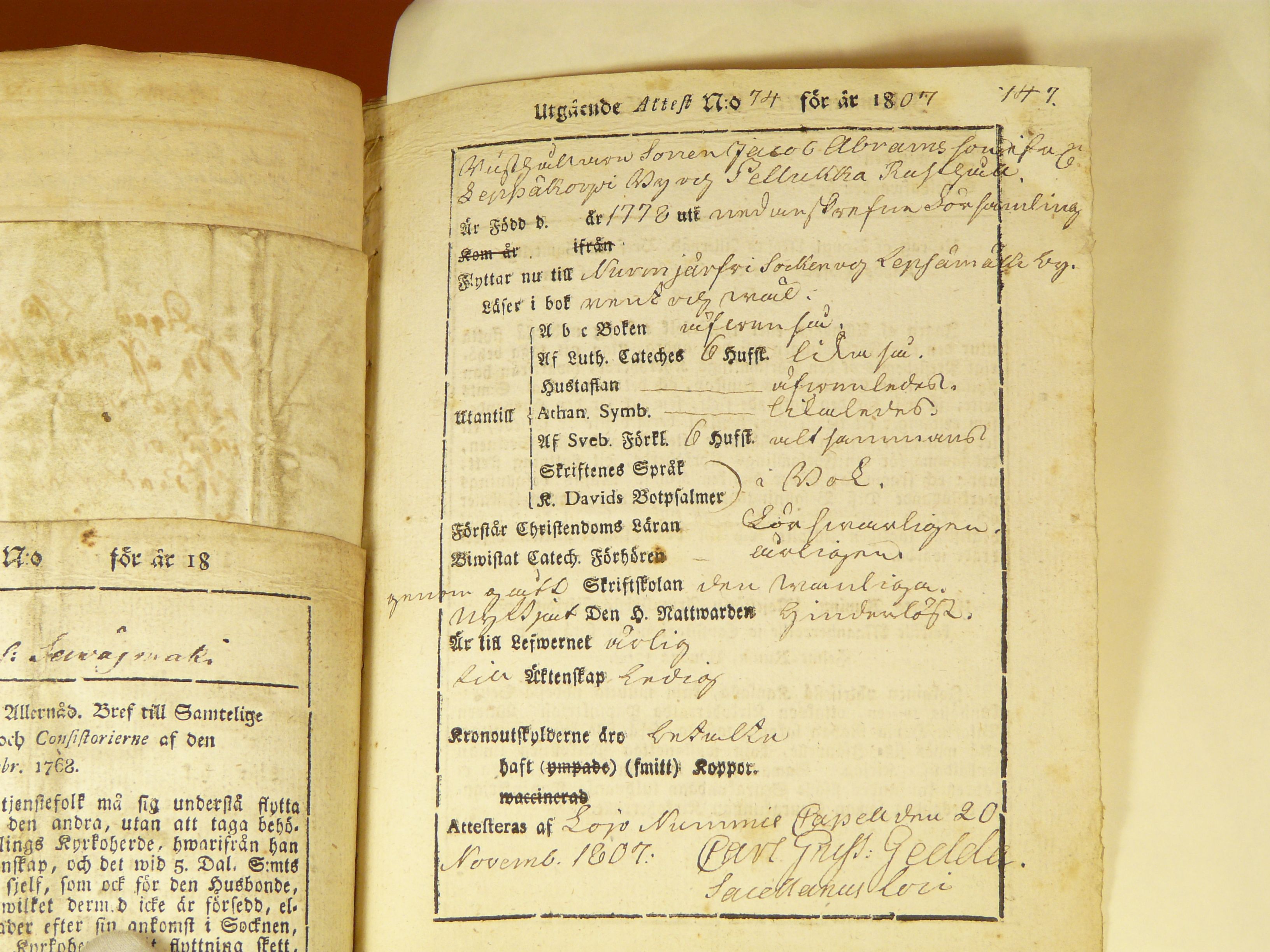 Nurmijärvi , Muuttokirjoja, 1710-1815