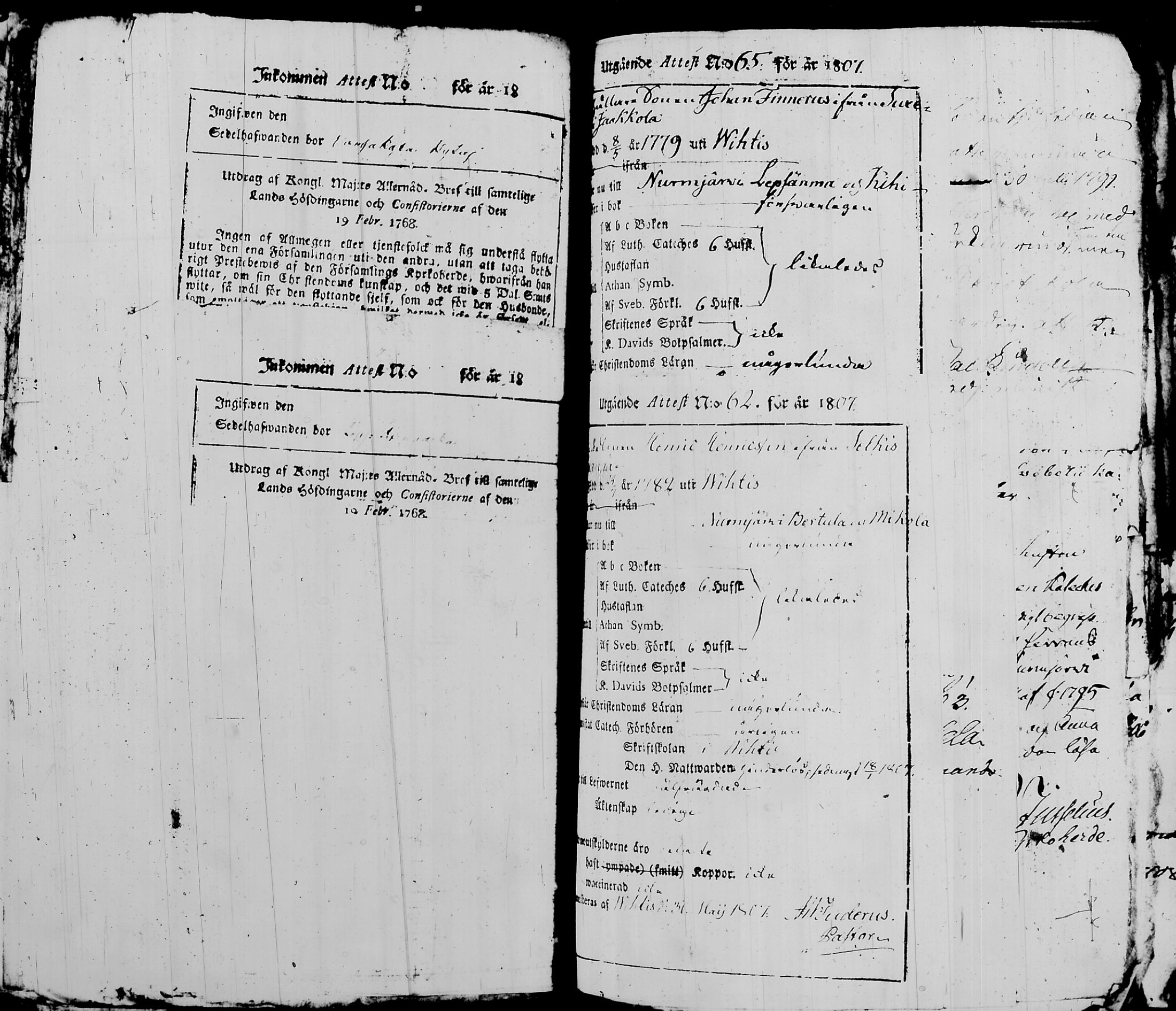 Nurmijärvi , Muuttokirjoja, 1710-1815