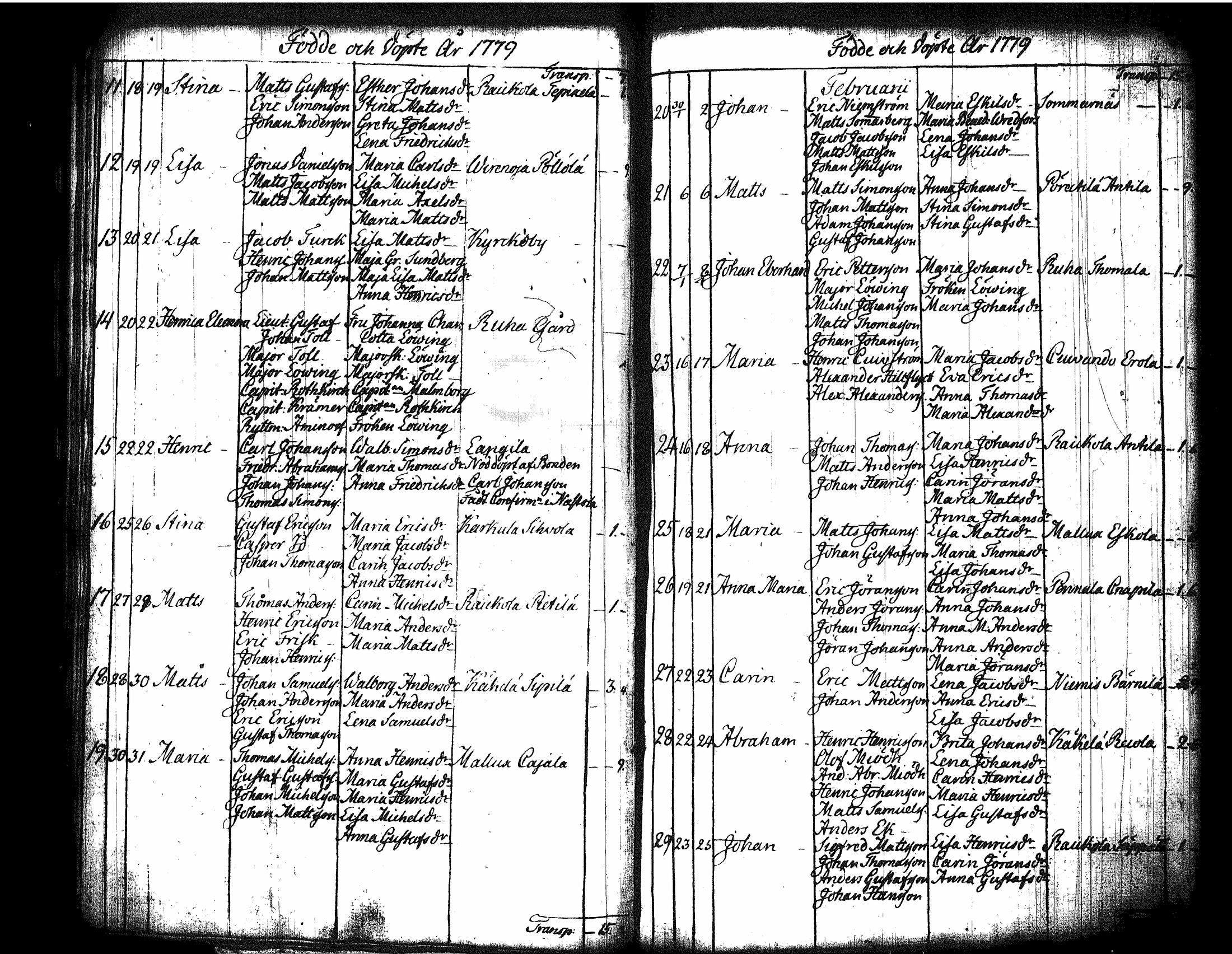 Orimattila , Syntyneet-vihityt-kuolleet, 1779-1796