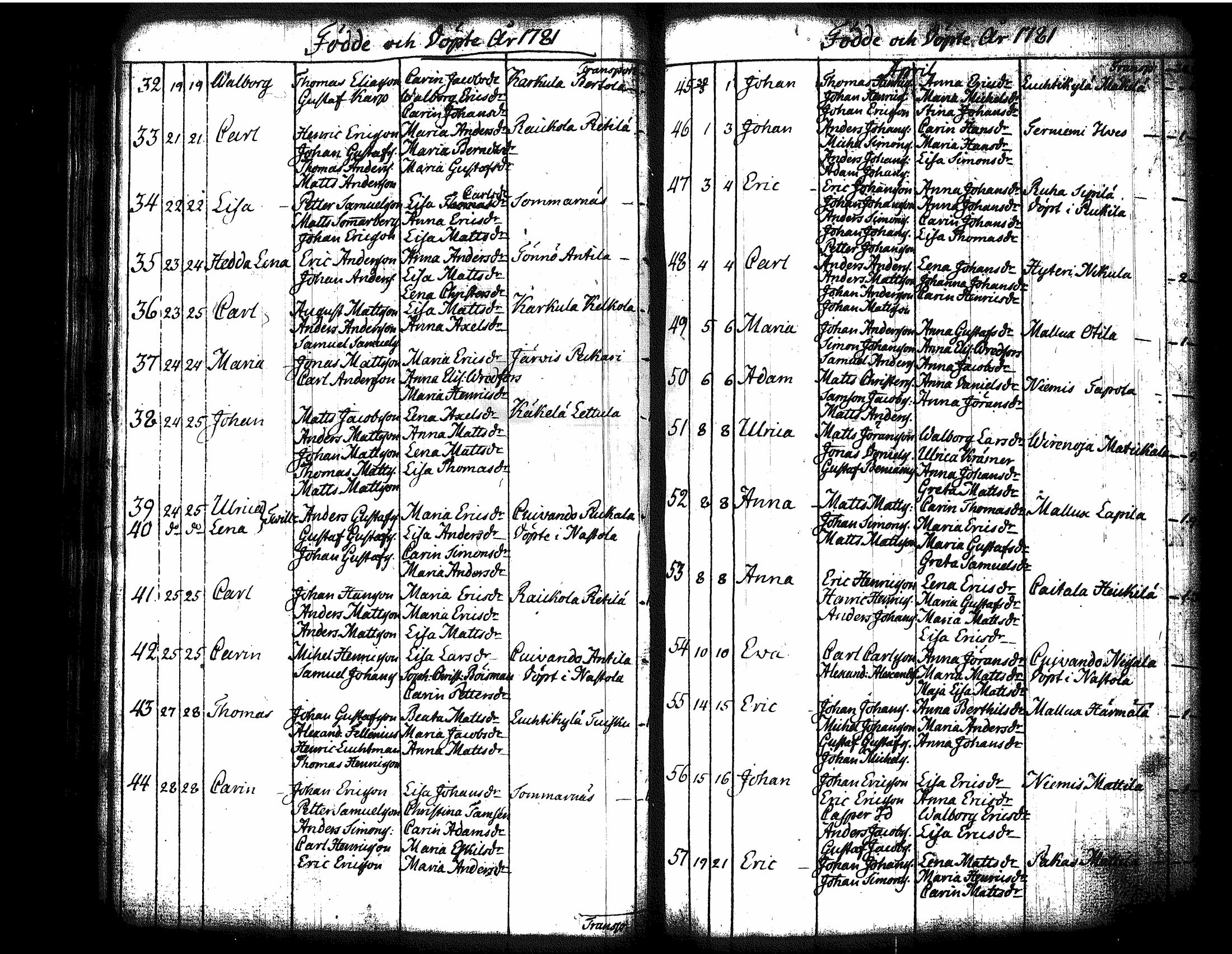 Orimattila , Syntyneet-vihityt-kuolleet, 1779-1796