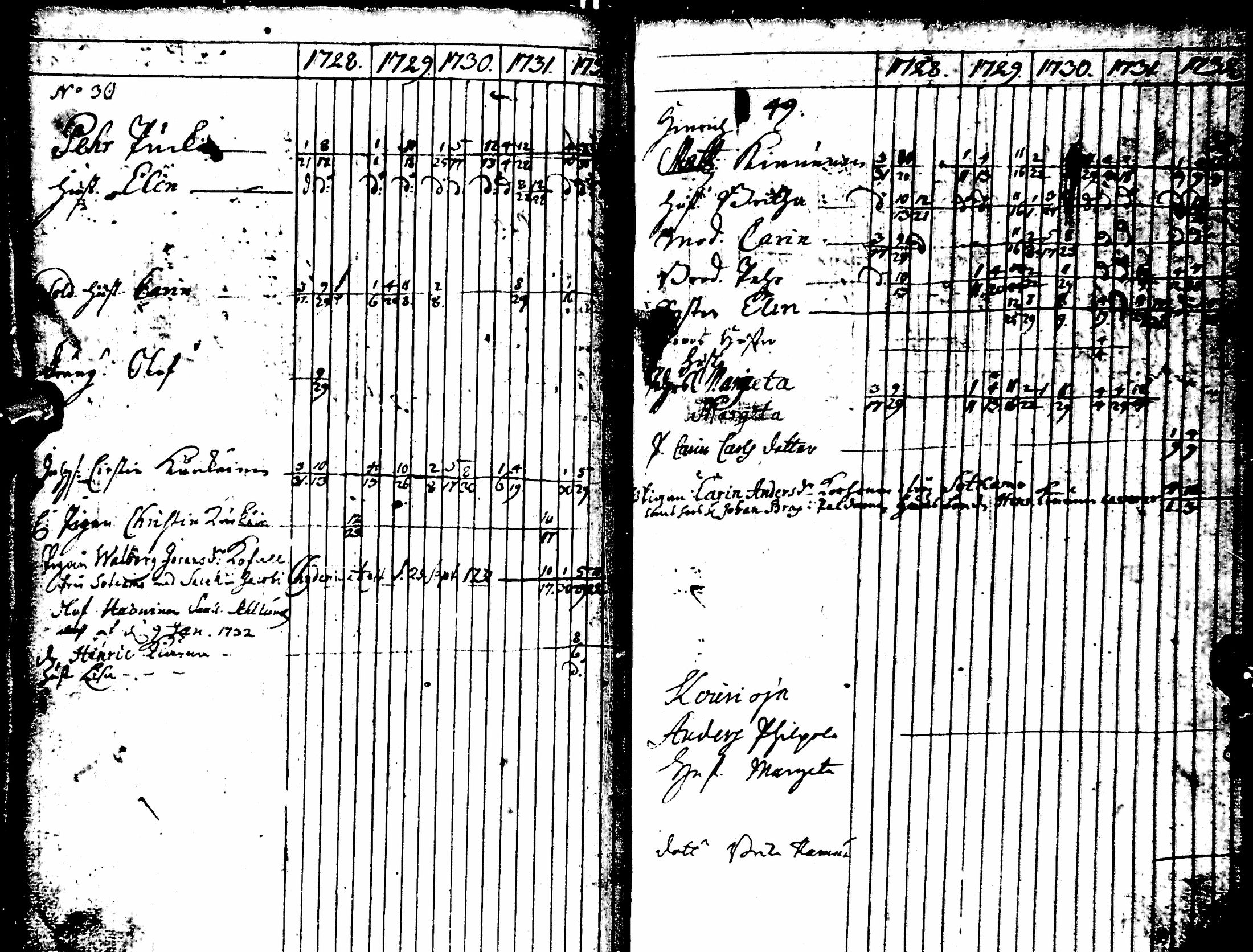 Oulujoki , Rippikirja, 1728-1732