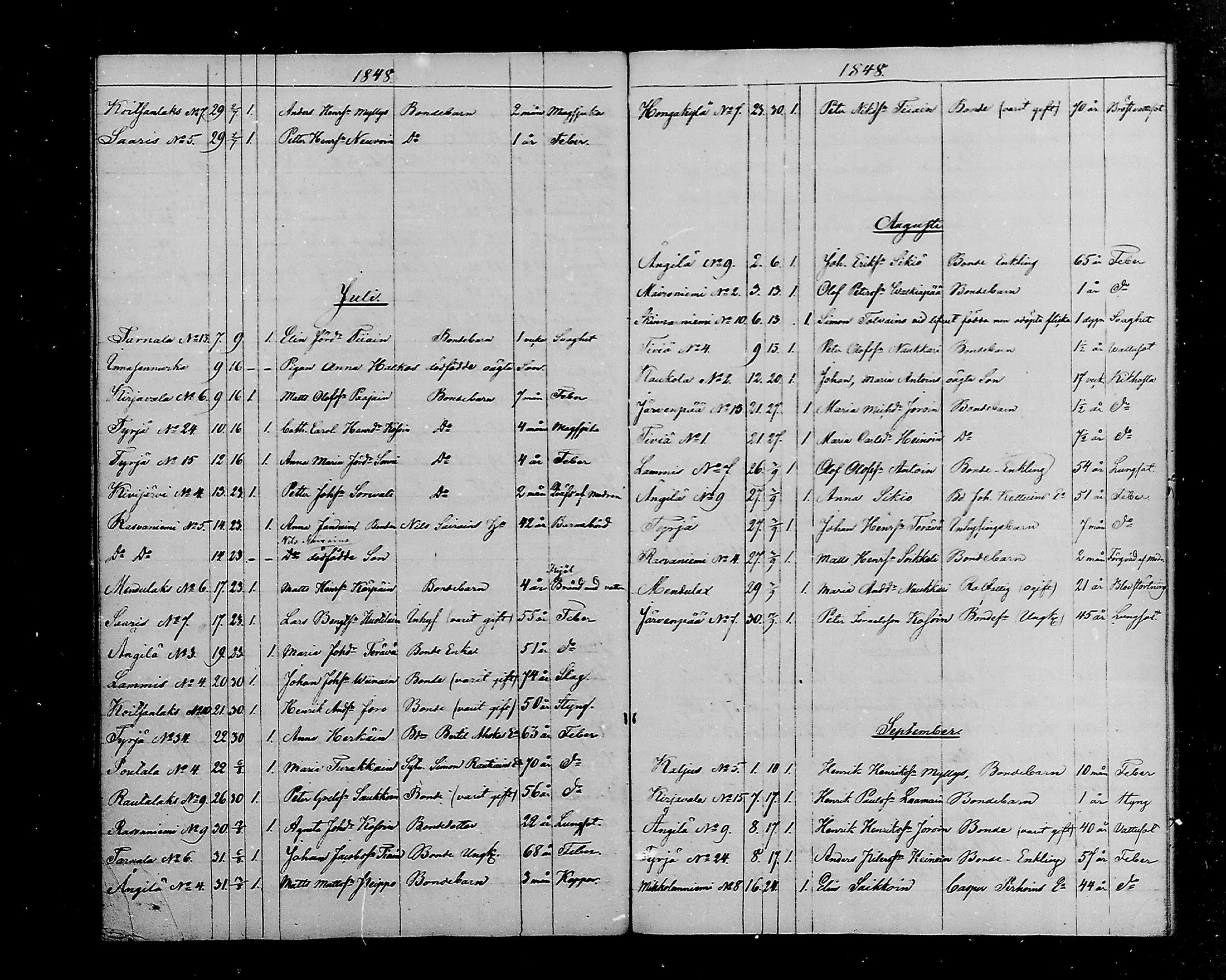 Parikkala , Kuolleet, 1838-1872