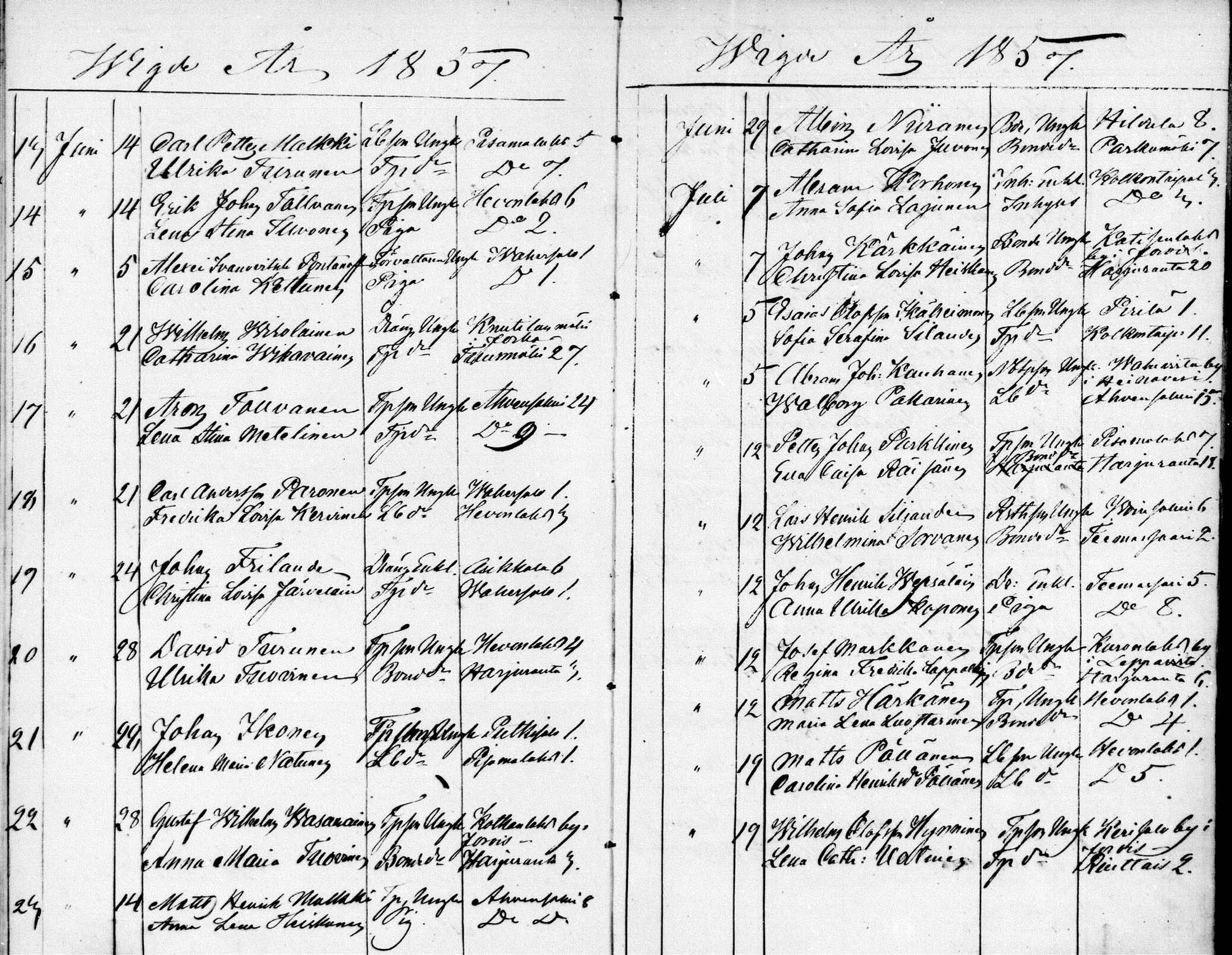 Rantasalmi , Vihityt, 1848-1883