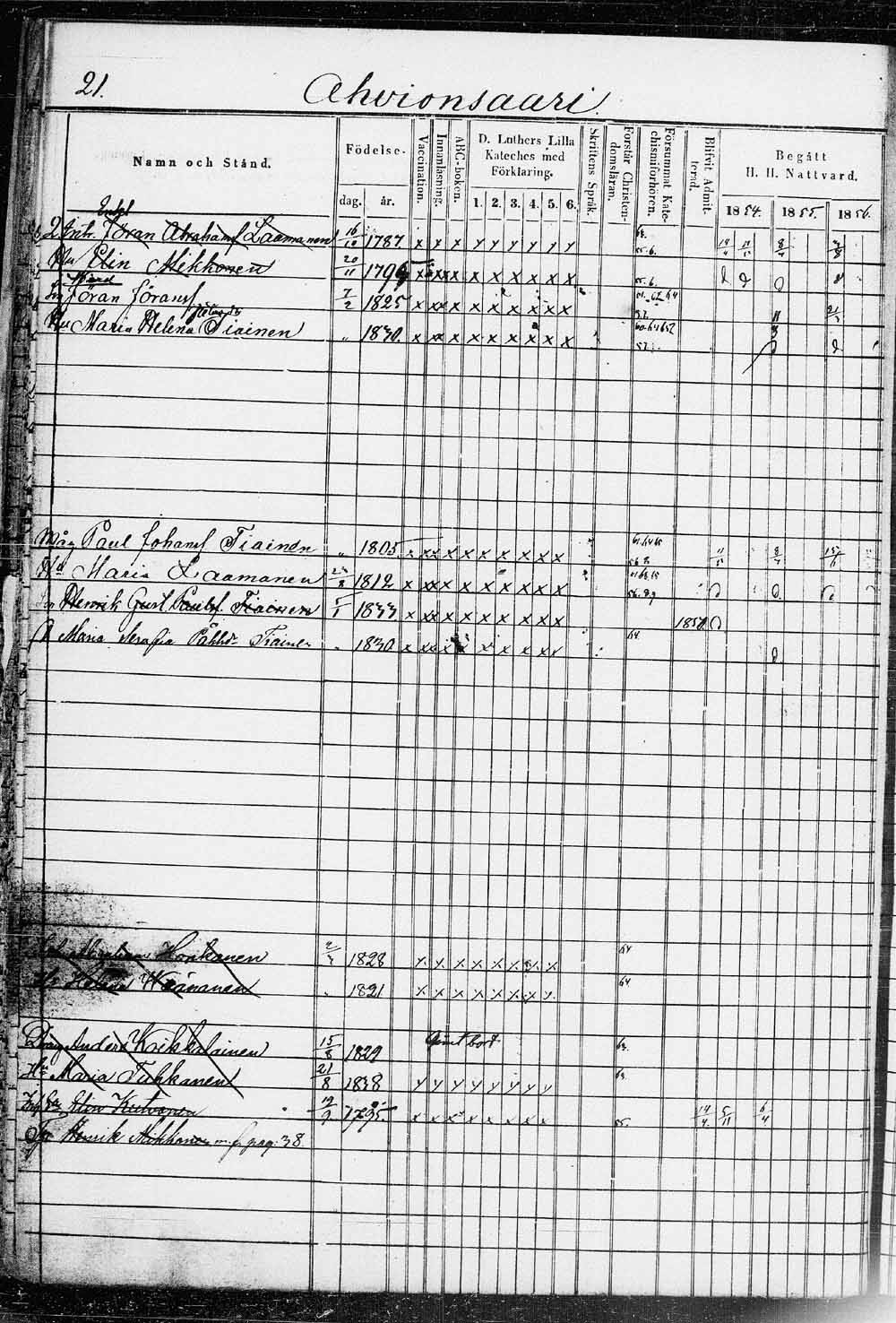 Sääminki , Rippikirja, 1854-1865