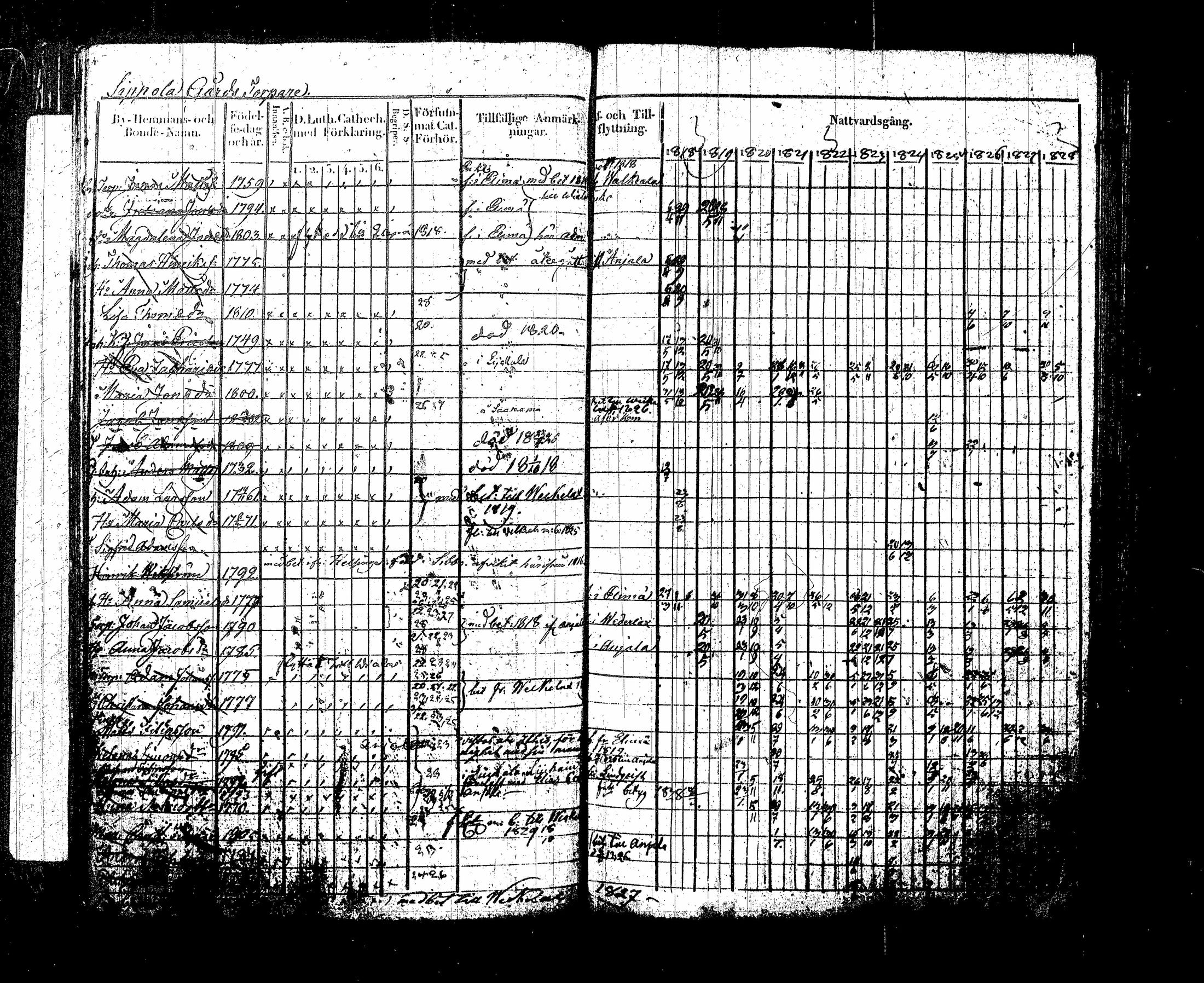 Sippola , Rippikirja, 1818-1835