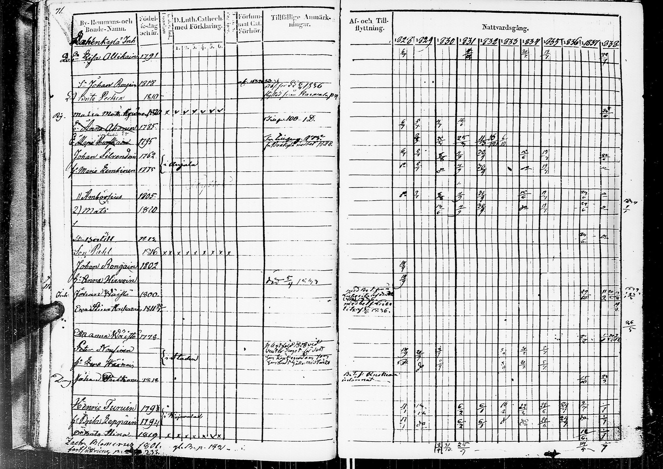 Sortavala msrk maaseurakunta, Rippikirja, 1828-1839