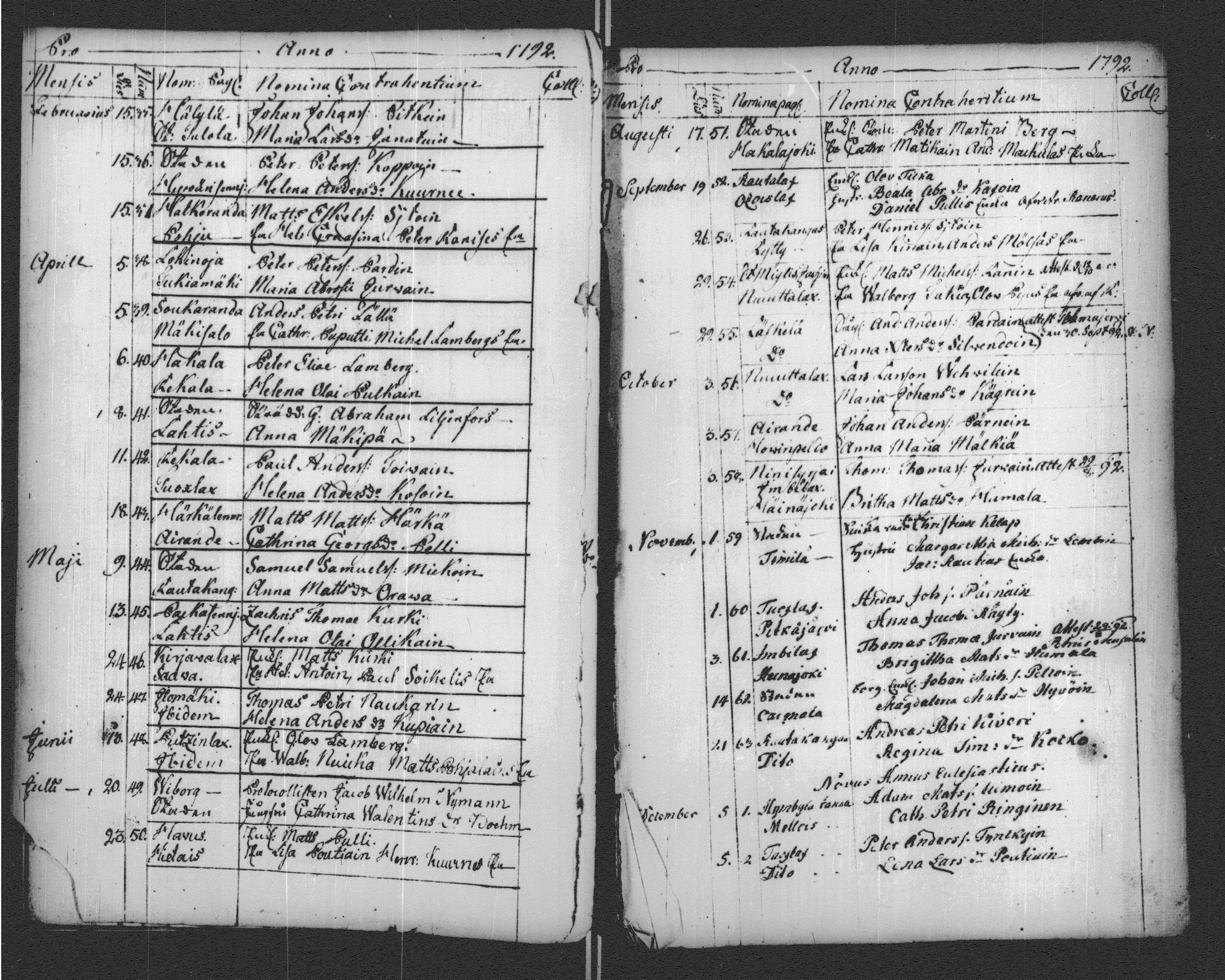 Sortavala Msrk maaseurakunta, Vihityt-kuolleet, 1771-1809