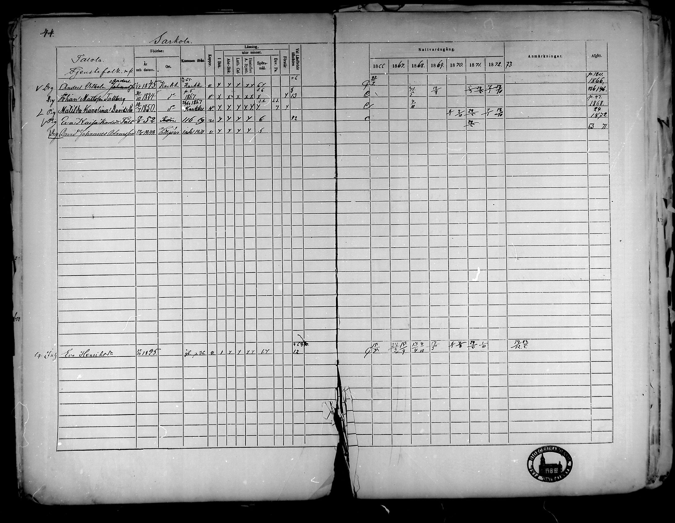 Suoniemi , Rippikirja, 1866-1873