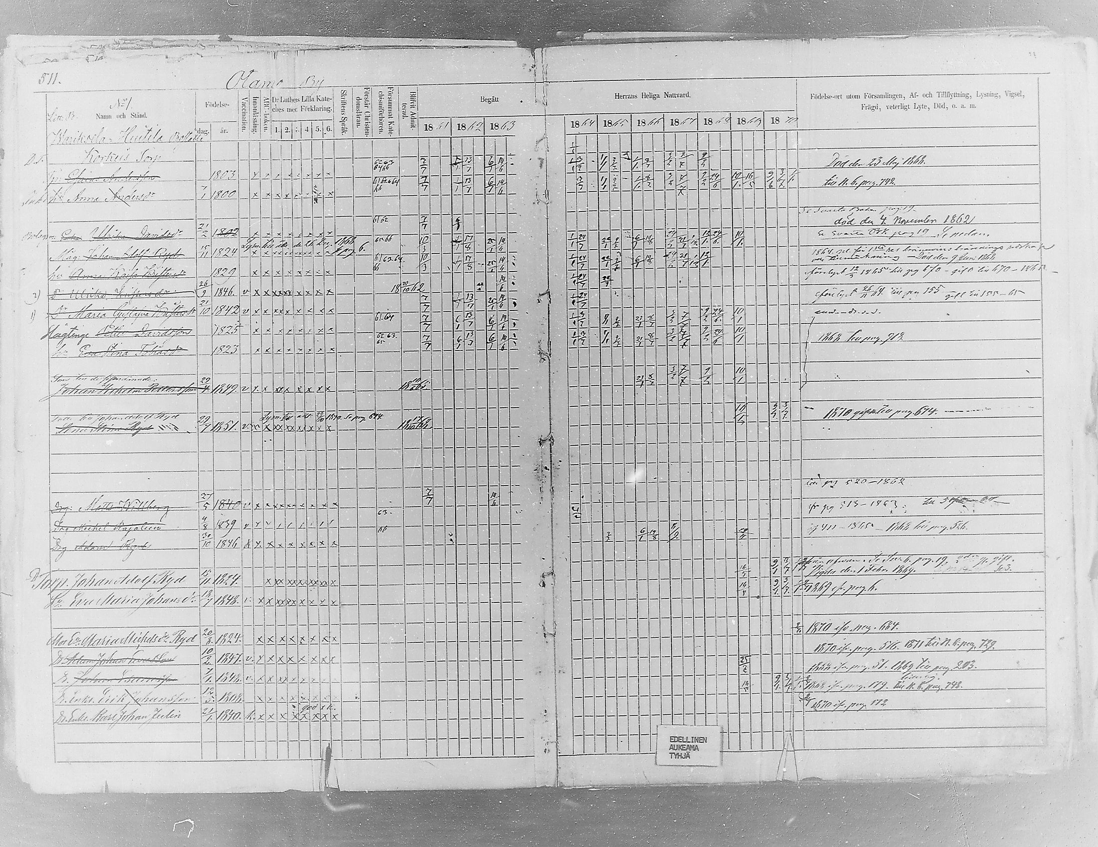 Sysmä , Rippikirja, 1861-1870