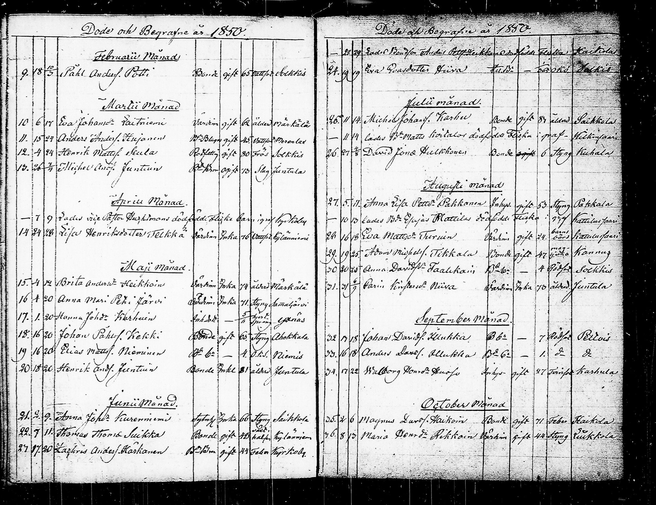 Taipalsaari , Kuolleet, 1804-1878