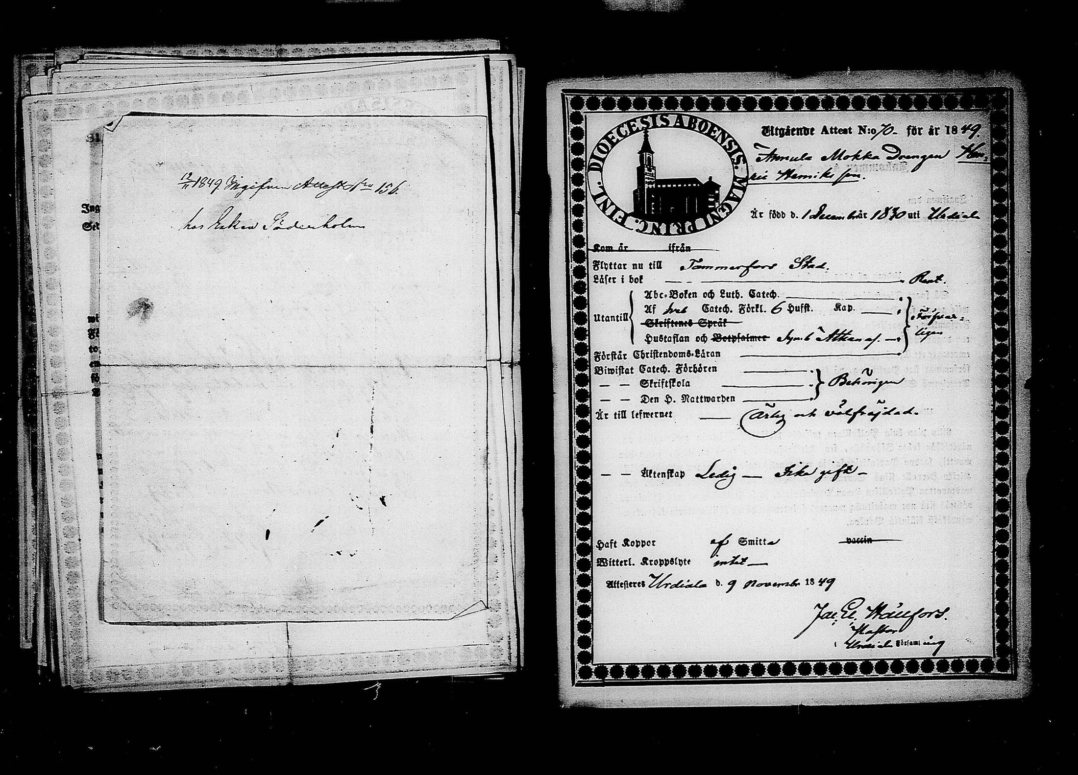 Tampereen tuomiokirkkoseurakunta , Muuttokirjoja, 1849-1850