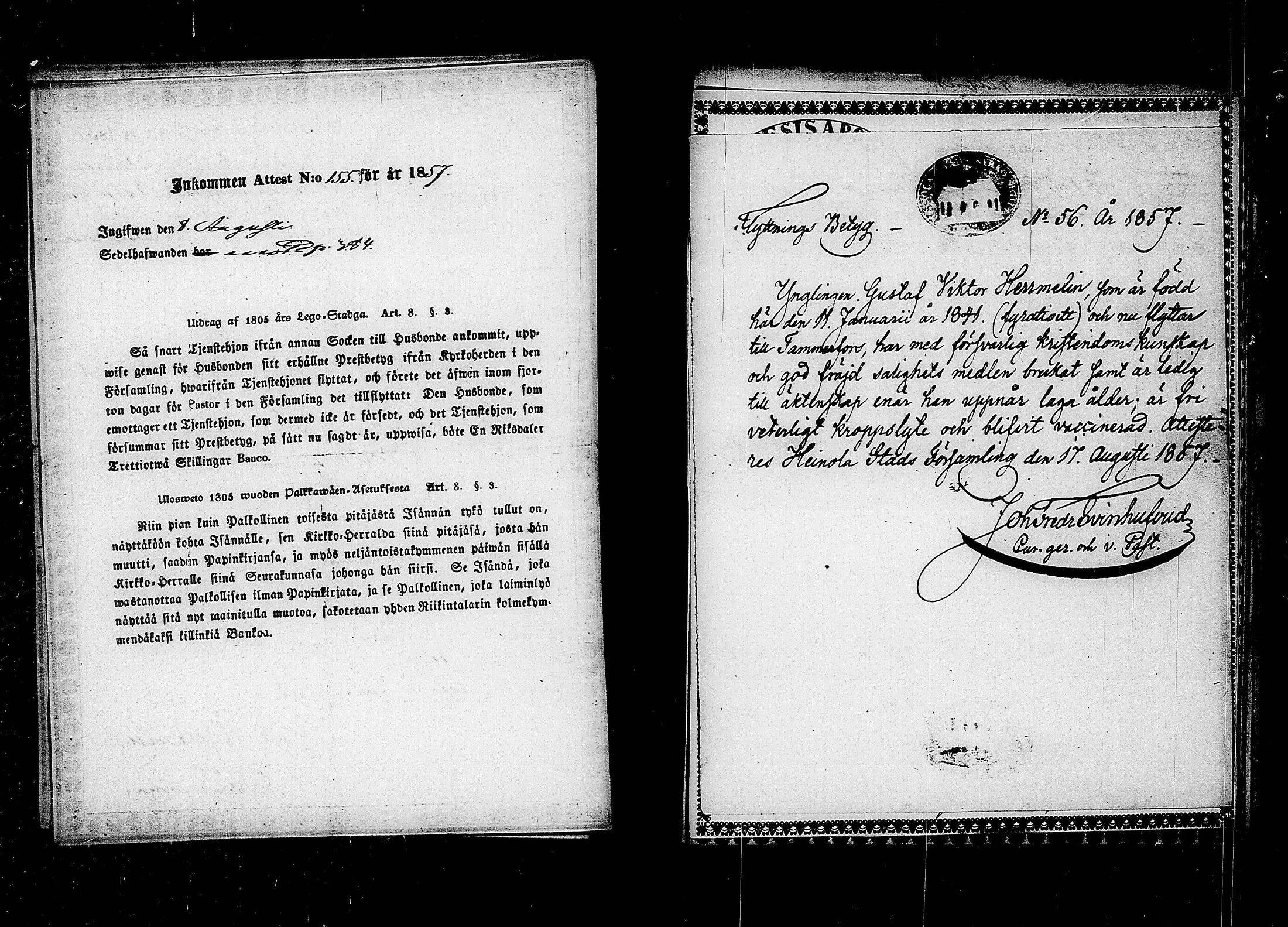 Tampereen tuomiokirkkoseurakunta , Muuttokirjoja, 1857-1858