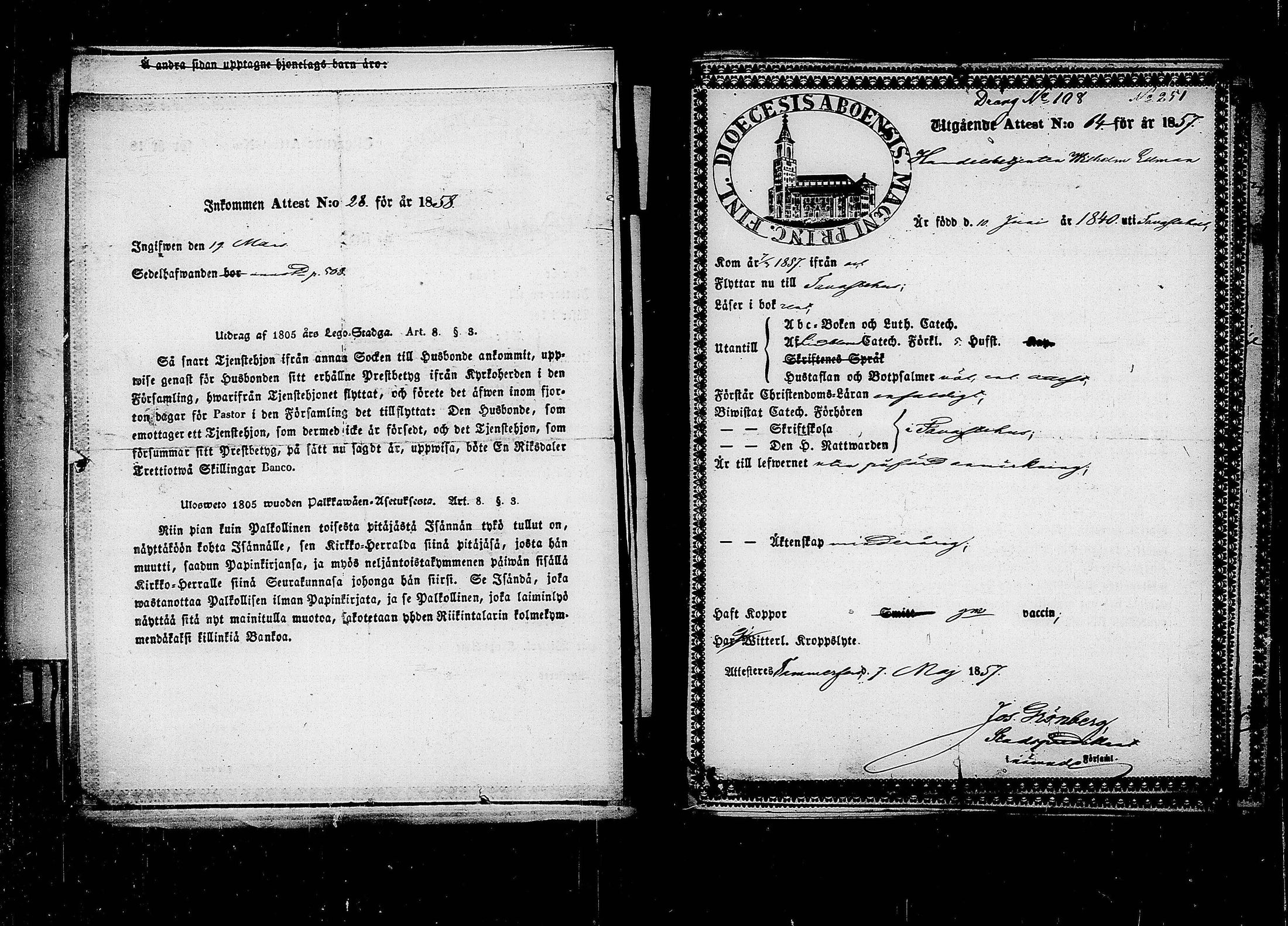 Tampereen tuomiokirkkoseurakunta , Muuttokirjoja, 1857-1858
