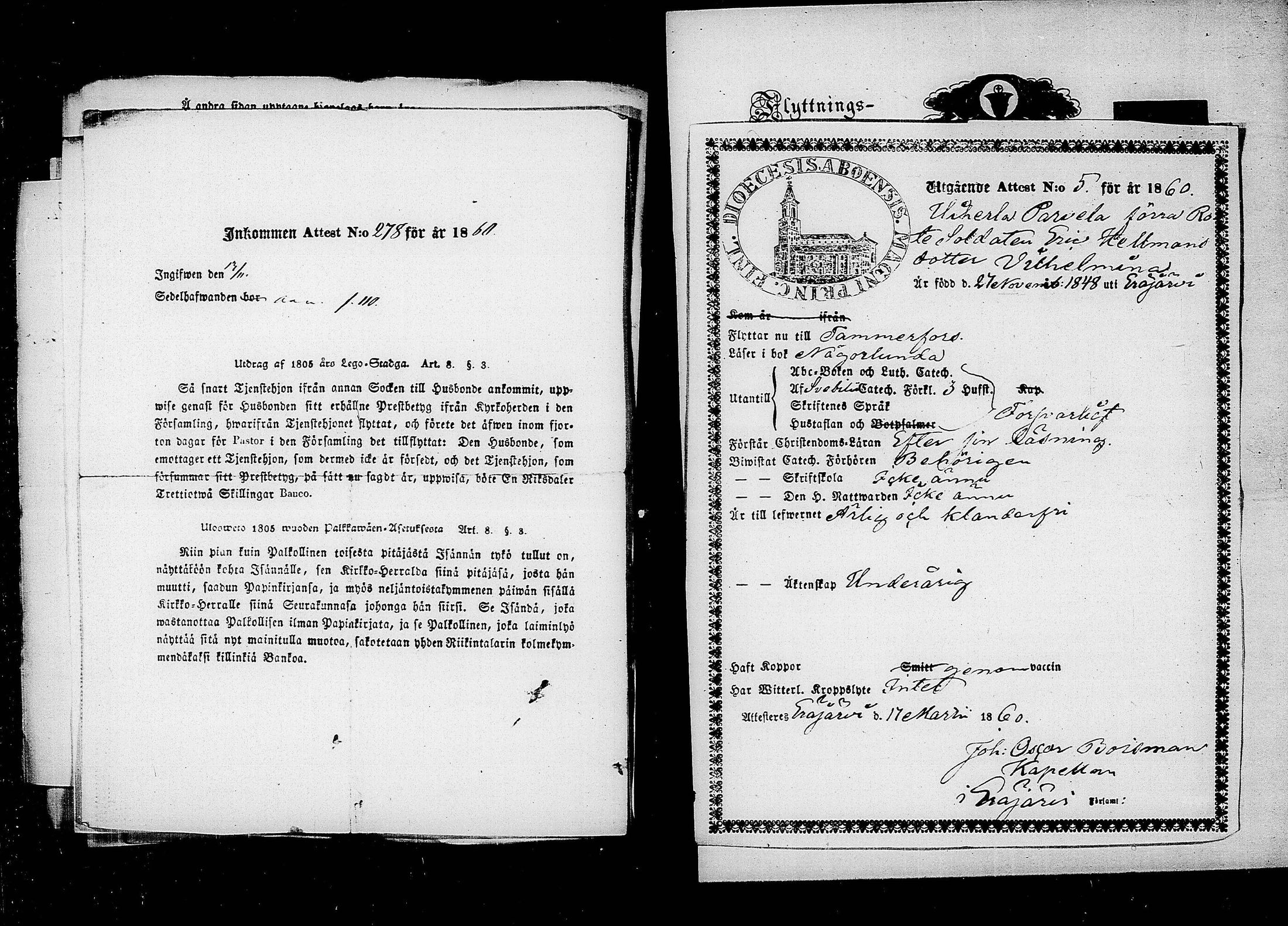 Tampereen tuomiokirkkoseurakunta , Muuttokirjoja, 1859-1860