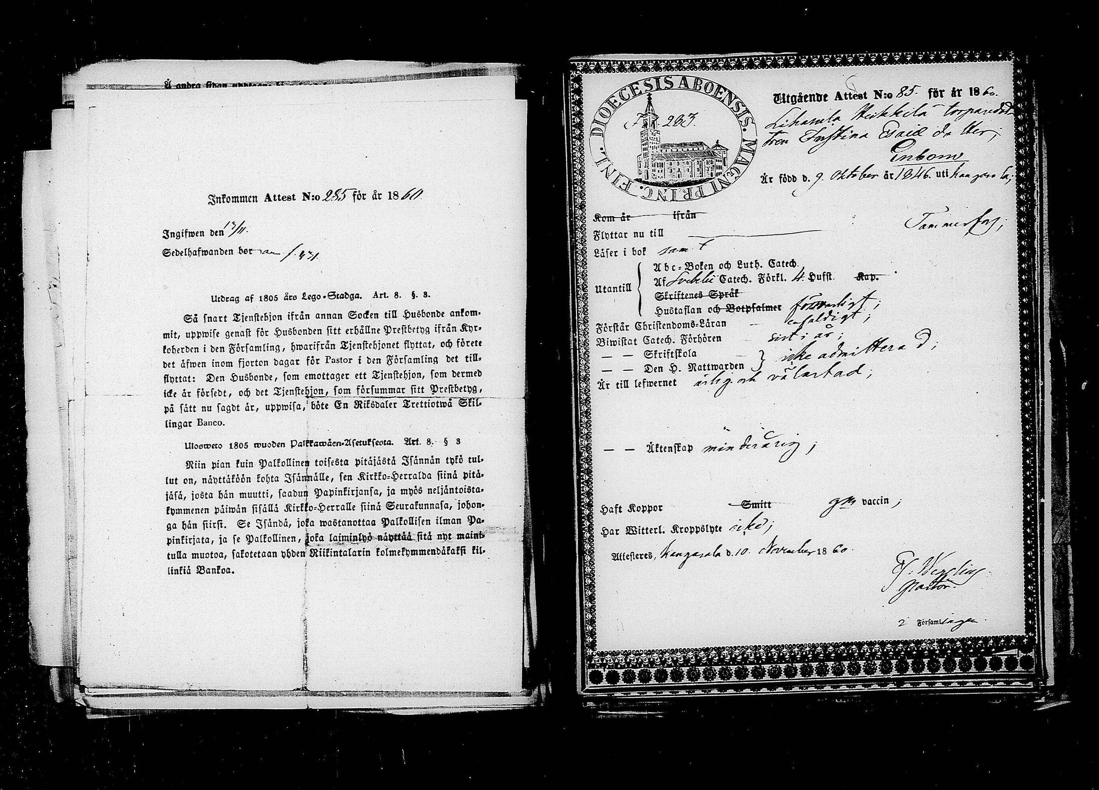 Tampereen tuomiokirkkoseurakunta , Muuttokirjoja, 1859-1860