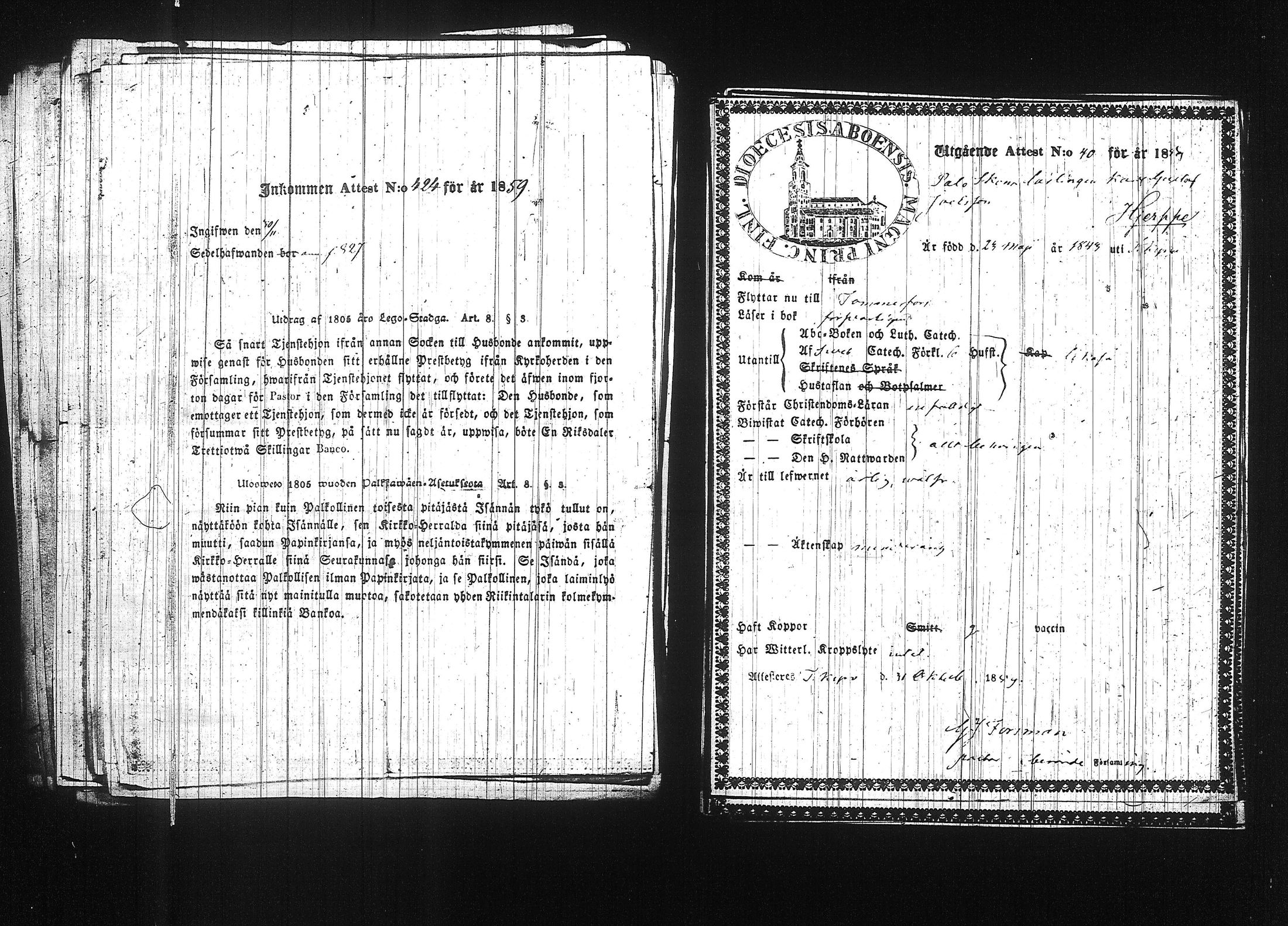 Tampereen tuomiokirkkoseurakunta , Muuttokirjoja, 1859-1860