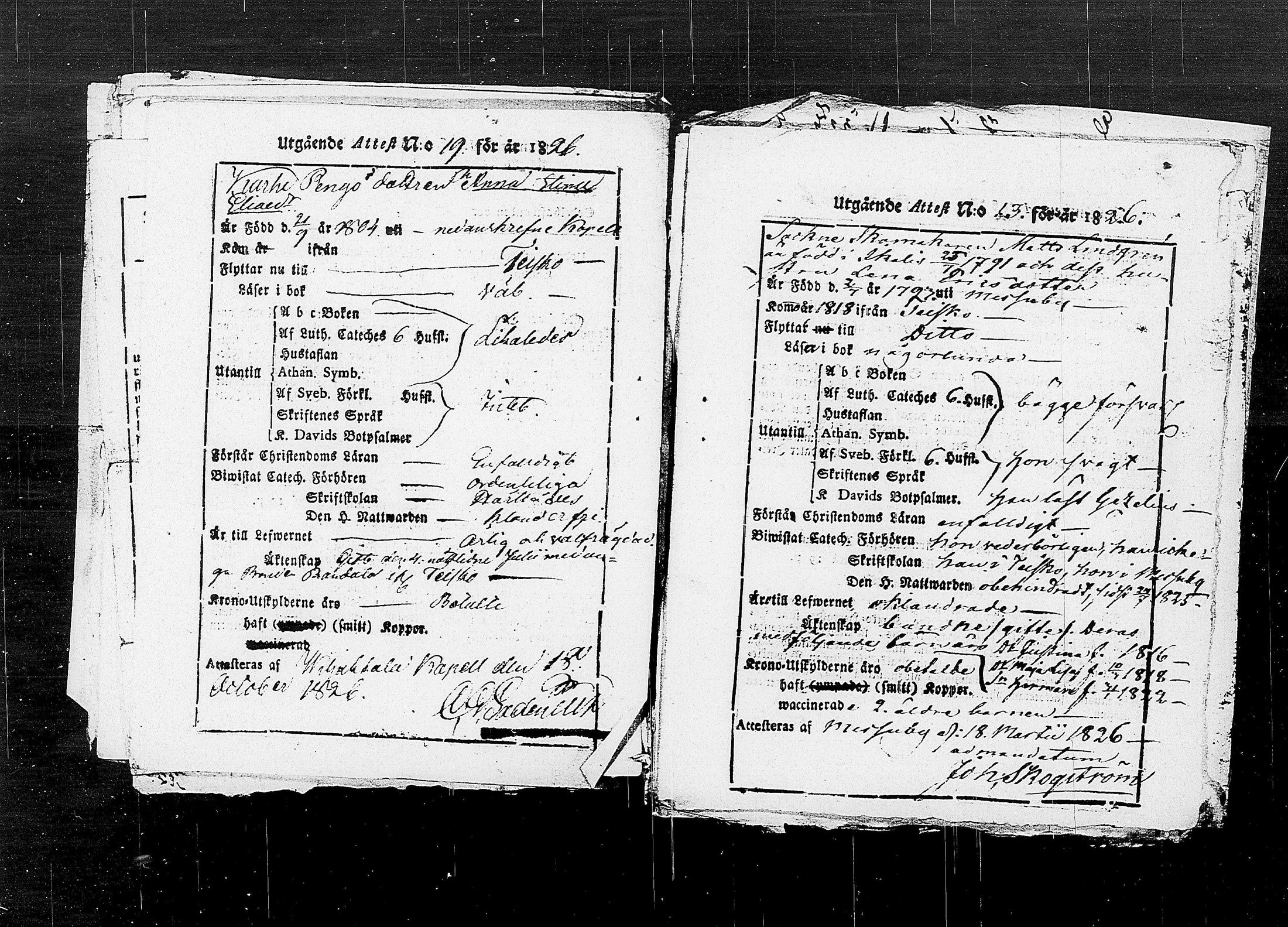 Teisko , Muuttokirjoja, 1808-1833