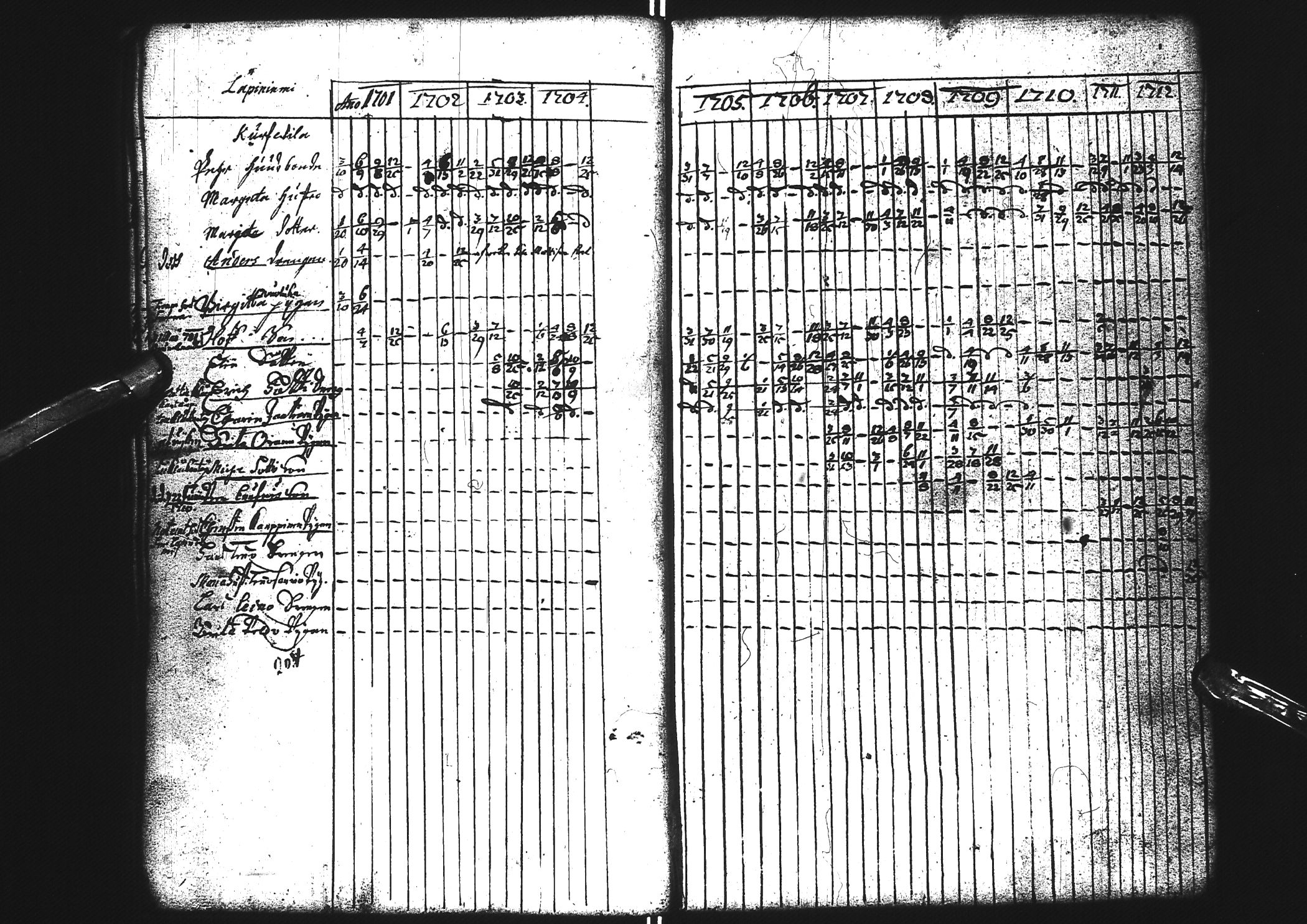 Tervola , Rippikirja, 1701-1725