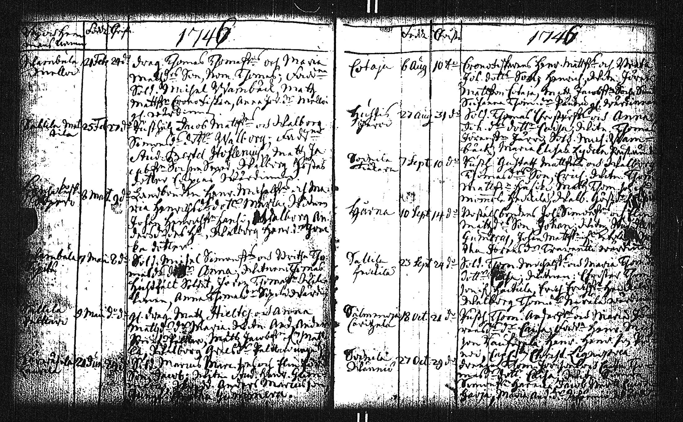 Vampula , Syntyneet-vihityt-kuolleet, 1723-1749